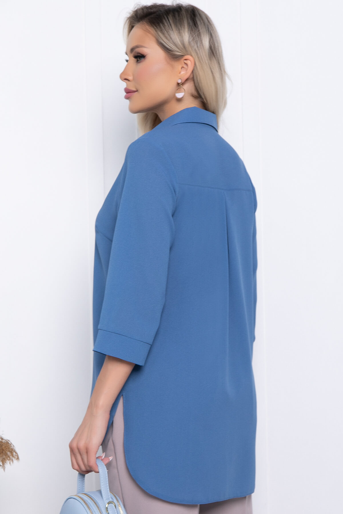 Лёгкая блуза свободного кроя в новом оттенке! Блуза с удлиненной спинкой, края скруглены, по бокам разрезы. Классический отложной воротник, по переду застёгивается на 4 пуговицы. Рукав три четверти, на манжете. Такая блуза подойдёт для создания офисного образа, а также её можно использовать в повседневных ансамблях.