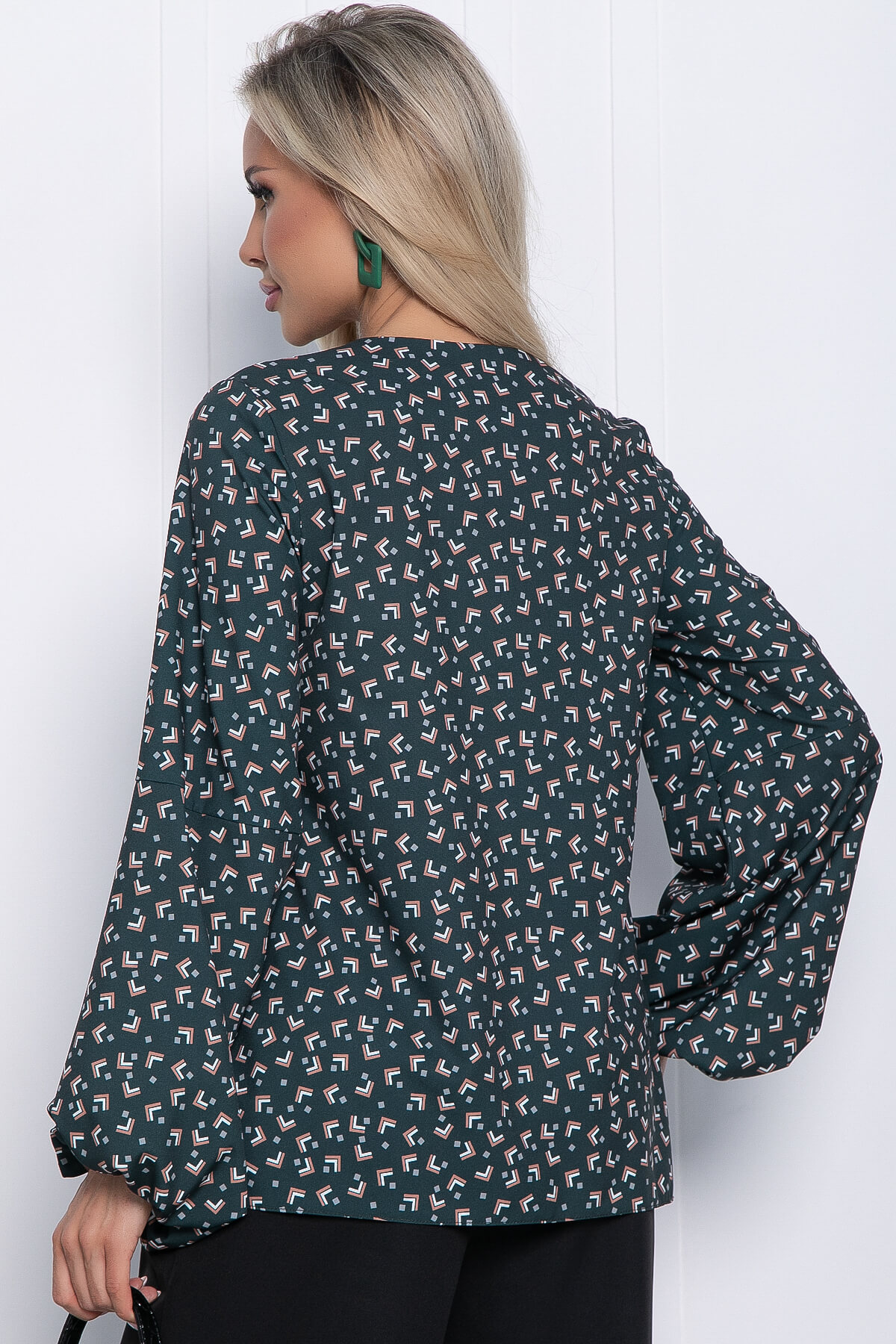 Блузка с геометрическим принтом - прекрасный выбор для стильных офисных образов! Отлично сочетается с юбками и брюками. Свободный крой позволяет с лёгкостью скрыть недостатки фигуры. Низ рукавов на резинке.