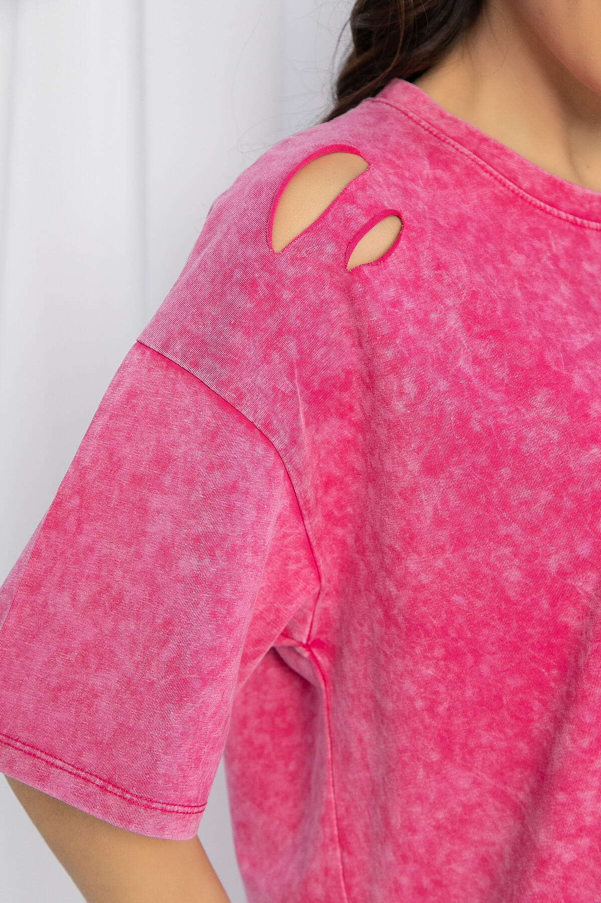 Футболка, которая идеально подойдёт для любой модницы, желающей выделиться из толпы! Эта футболка выполнена с добавлением хлопка, что обеспечивает максимальный комфорт и удобство при носке. Благодаря эффекту варки она приобретает особый шарм и становится по-настоящему уникальной. Эта футболка станет универсальным элементом вашего гардероба, который можно сочетать с джинсами, юбками или шортами. Она подойдёт для любого случая и создаст непринуждённый и стильный образ.