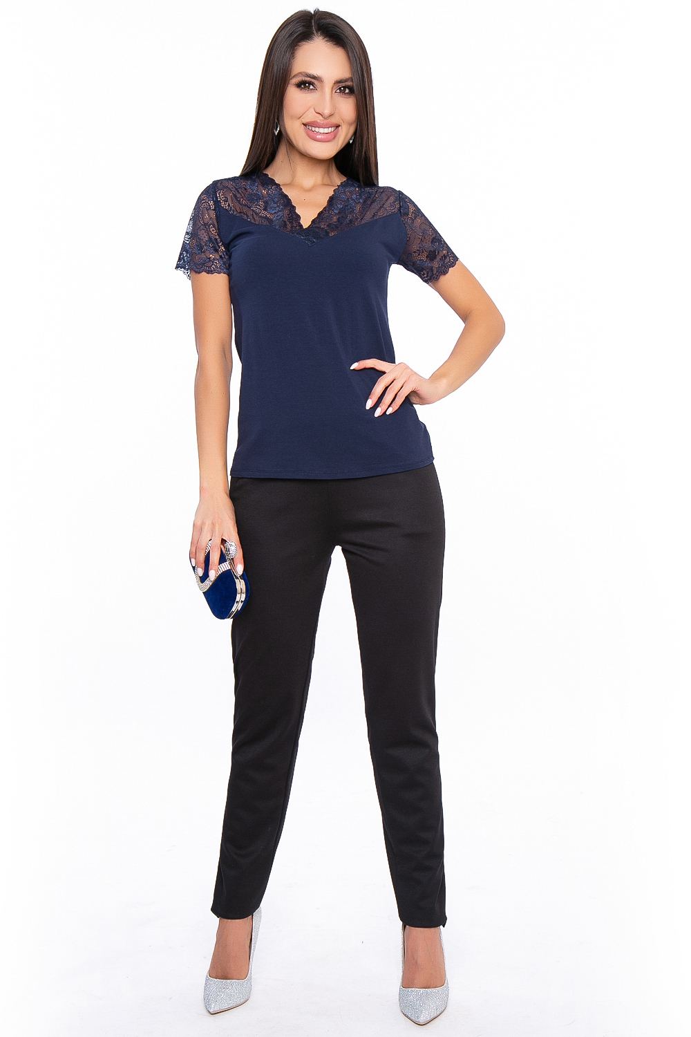 - Женственная блуза прилегающего силуэта со вставками из эластичного гипюра;