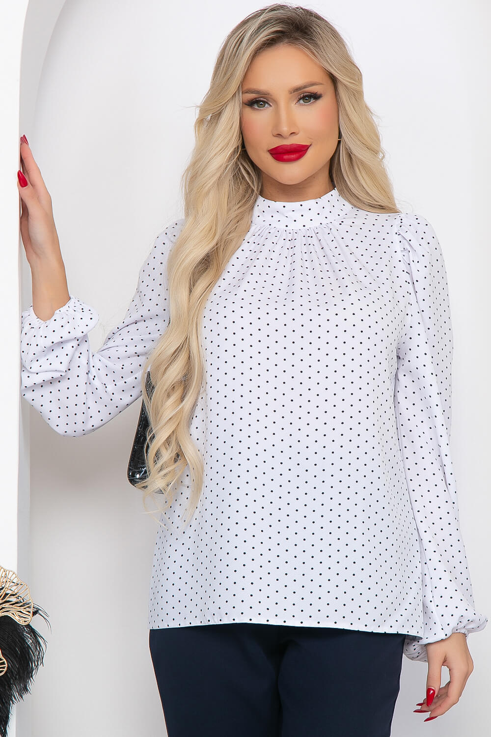 Базовая блуза женственного кроя из приятной к телу ткани поможет в создании деловых образов. Модель в классическом оттенке идеально вписывается в любую обстановку от офисных будней до праздничных мероприятий. Блуза свободного кроя, рукав втачной, длинный, на резинке.