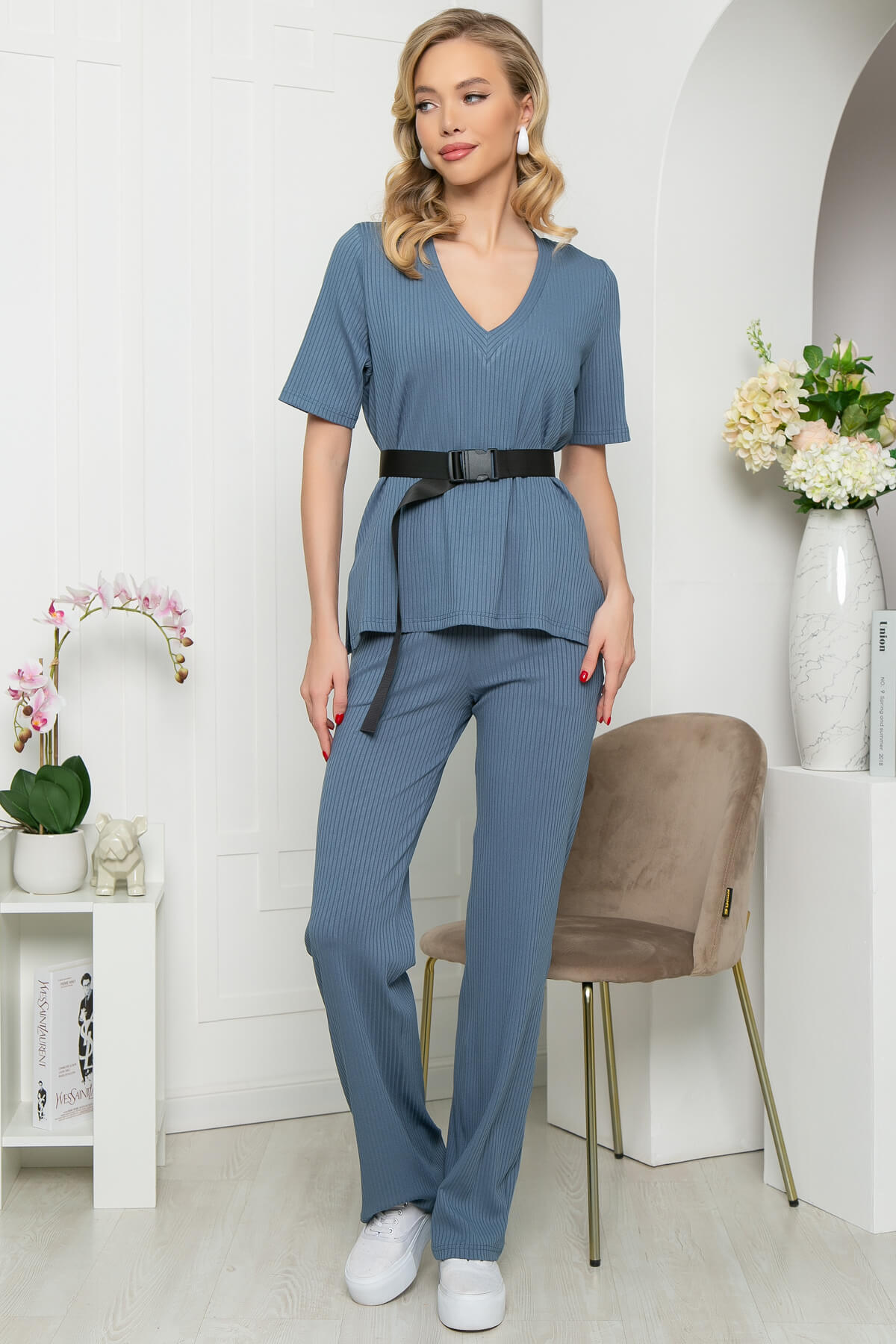 Наша стильная новинка для встречи весны! Костюм-двойка, состоящий из брюк на резинке и джемпера прямого кроя. Очень удобный комплект для создания стильного повседневного образа. При желании подчеркнуть талию, верх можно заправить или использовать пояс, входящий в комплект. Удлиненный джемпер прямого кроя имеет V-образный вырез горловины и короткий рукав. Брюки прямого кроя, по талии на комфортной резинке.