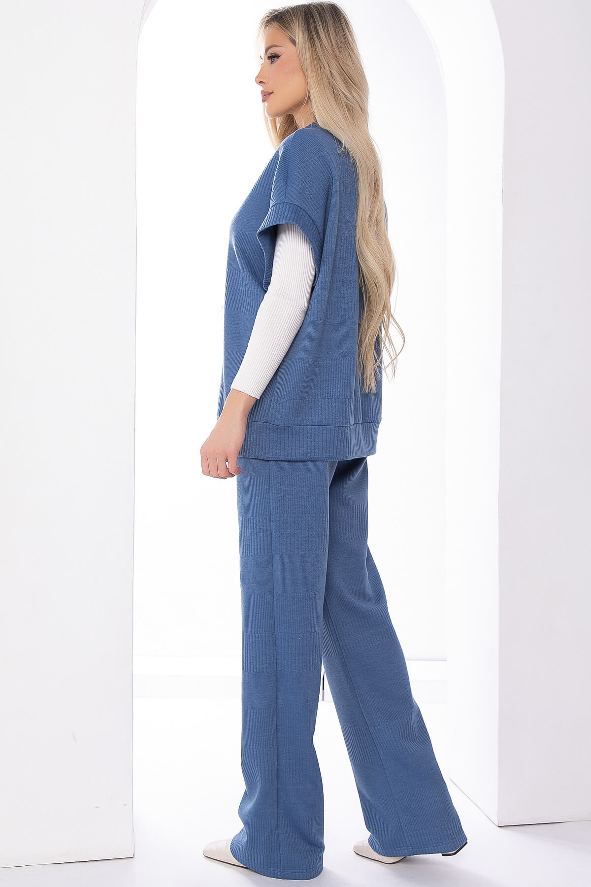 Костюм-двойка, состоящий из прямых брюк с высокой посадкой на резинке и жилета свободного кроя. Преимущество комплекта в том, что вы сможете самостоятельно носить как жакет, так и брюки. В повседневном образе смело сочетайте с лоферами или ботинками, а если нужен более официальный образ, с туфлями на каблуке.
