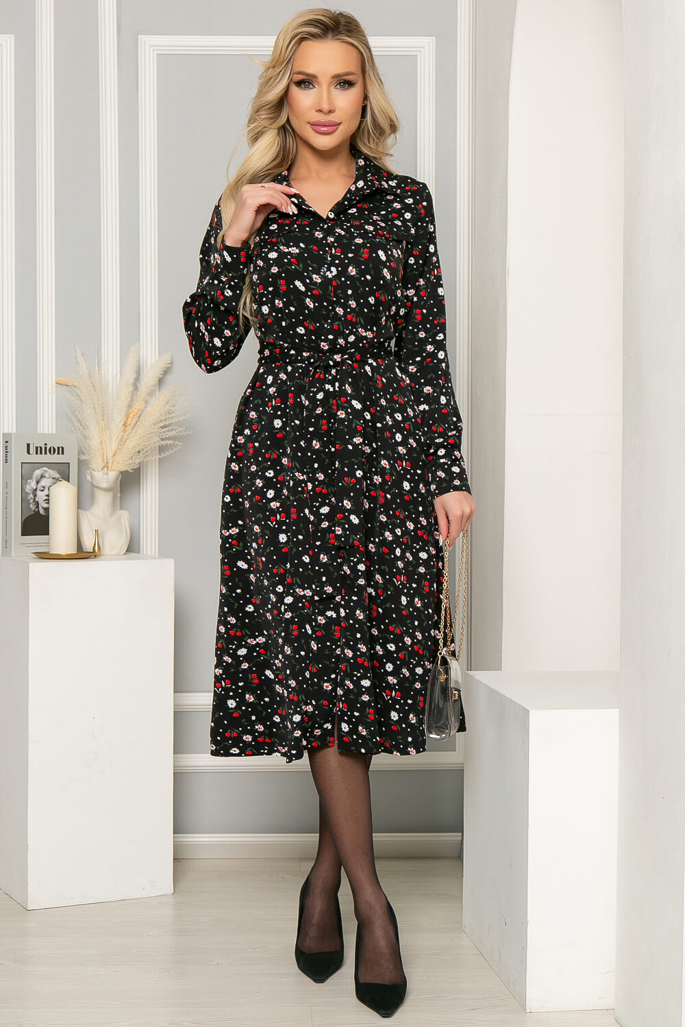 Тренд сезона 2023 года - стильное элегантное платье-рубашка. Такая модель подойдёт как для создания делового, так и повседневного образа. Подобрать аксессуары можно легко, всё зависит от вашего настроения и ситуации. В классическом варианте платье отлично выглядит с туфлями на каблуке, но также интересный образ получится и в сочетании, например, с замшевыми ботфортами. Пояс из основной ткани входит в комплект.