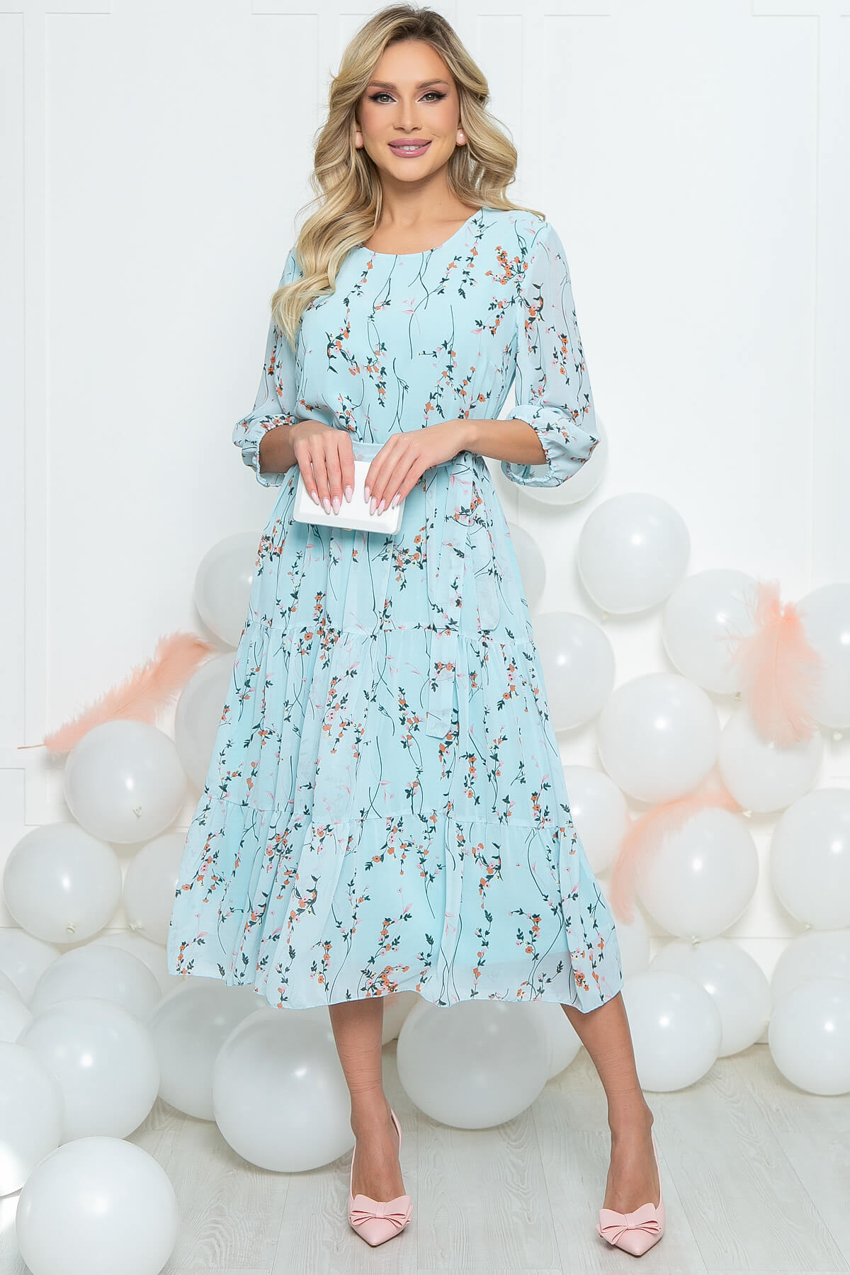 Платье из шифона с цветочным принтом украсит ваш нарядный образ и создаст прекрасное настроение. Голубой цвет платья добавит привлекательности. Нежная и струящаяся фактура ткани выгодно подчеркнут достоинства фигуры, а пояс из основной ткани сделает акцент на талии.