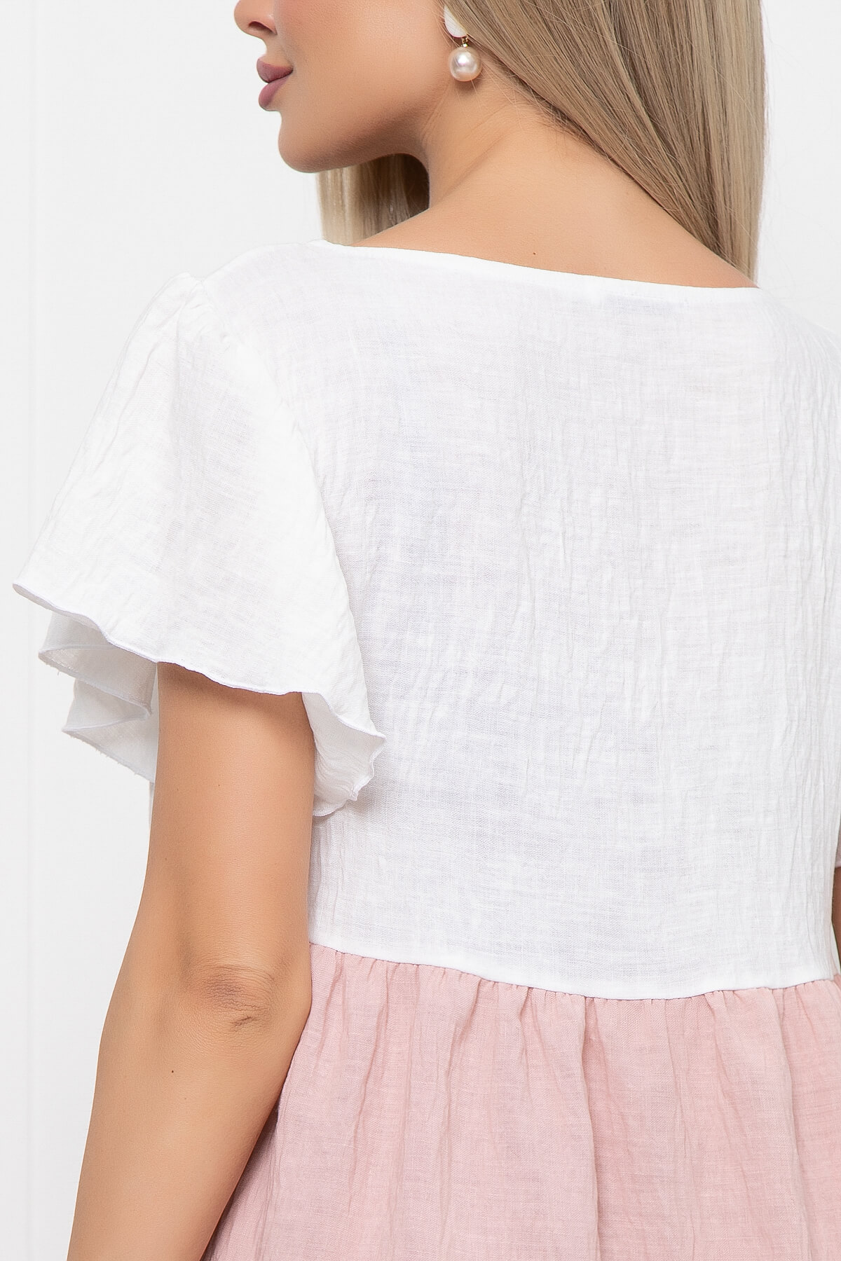 Платье свободного кроя изумительно смотрится как с каблучком, так и с кедами! Юбка с двумя воланом по низу добавляет романтичности и воздушности образу. Рукав скроен по типу "крылышко".