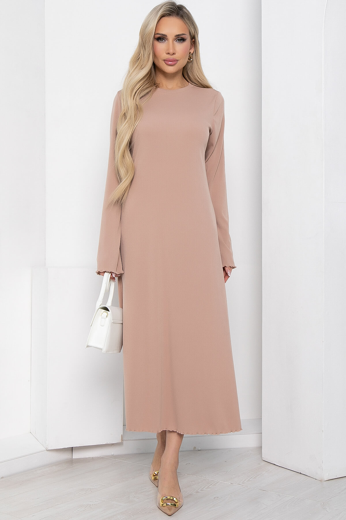 Теплое платье из уютного и мягкого трикотажа элегантно подчеркнет все достоинства фигуры. Длинное лаконичное платье подойдёт для создания повседневного образа. Отлично сидит по фигуре, выделяя женственные формы. Низ рукава и платья обработан закруткой. В комплект входит пояс из основной ткани с акцентной белой пластиковой пряжкой.