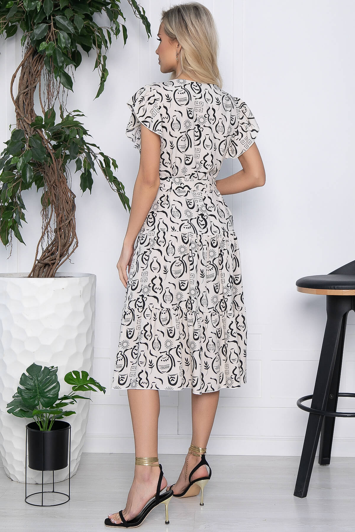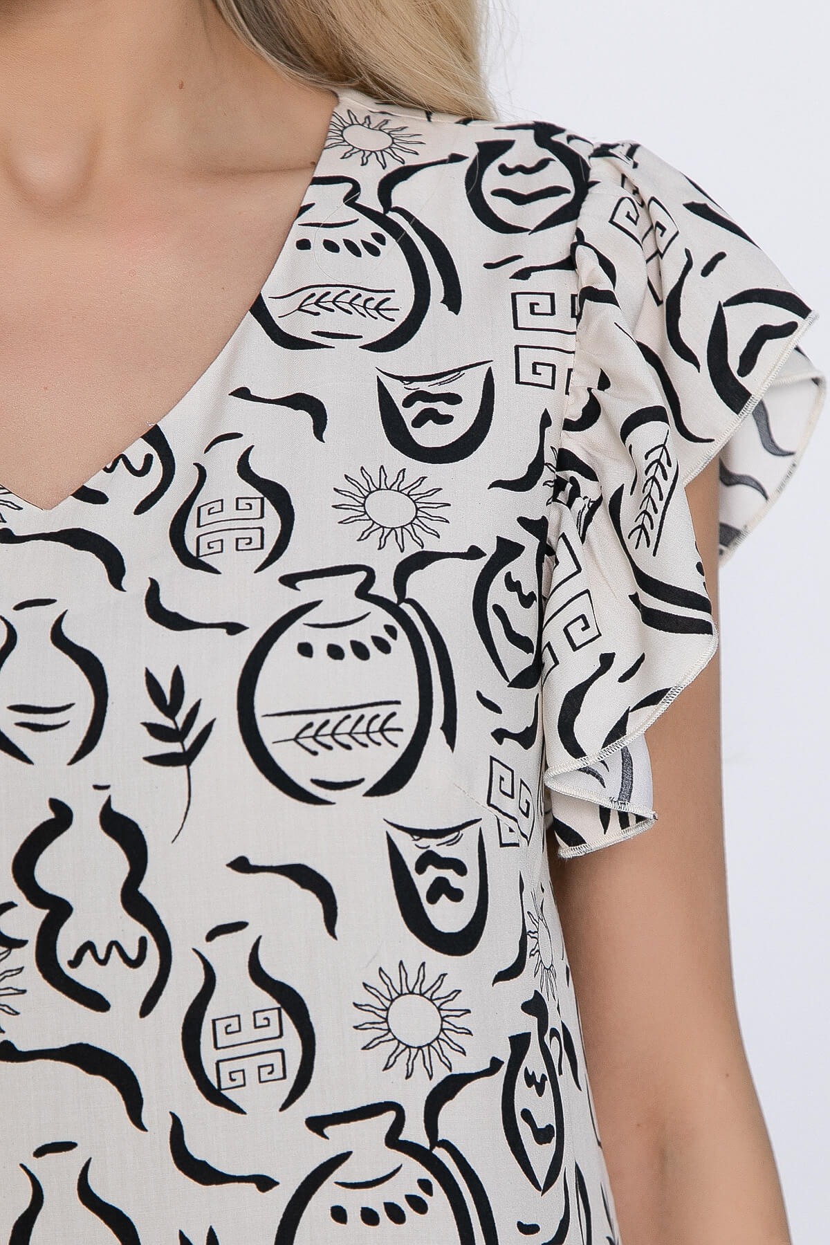 Воздушное, нежное платье А-силуэта подчеркнёт женственность и грацию! В комплект входит пояс из основной ткани, которым можно выделить талию. Это платье идеально подойдет для летнего сезона, но также будет актуально и тёплой осенью и весной. Рукава скроены по типу "крылышко". Вырез горловины V-образный.