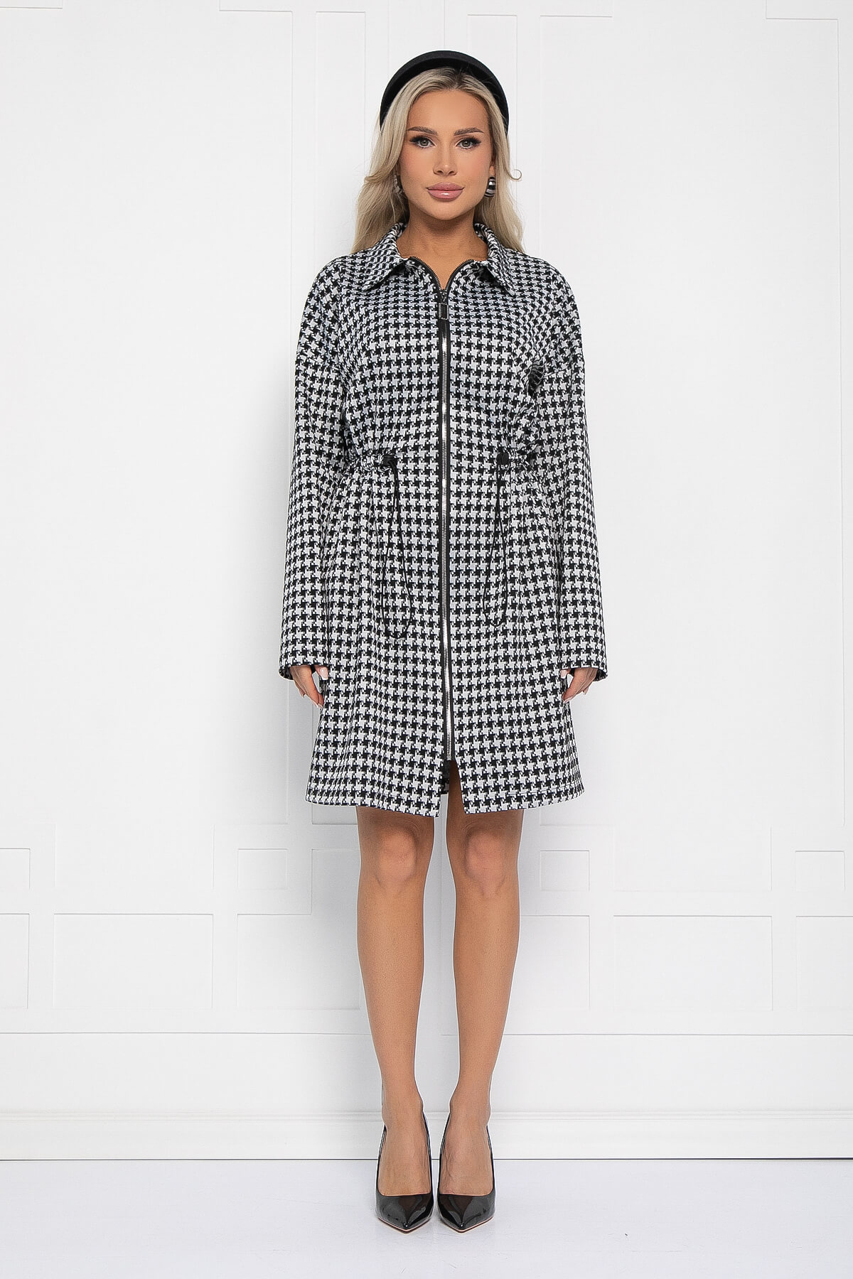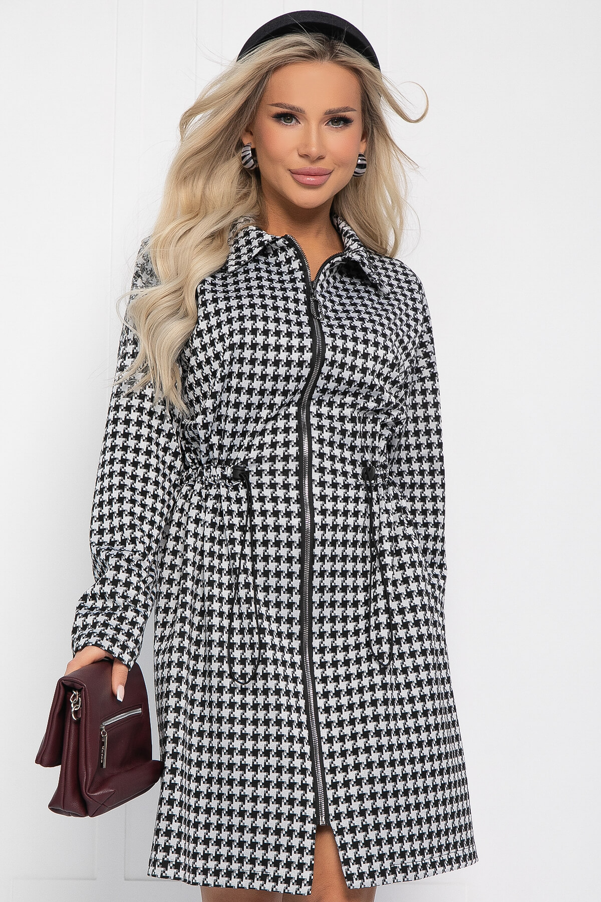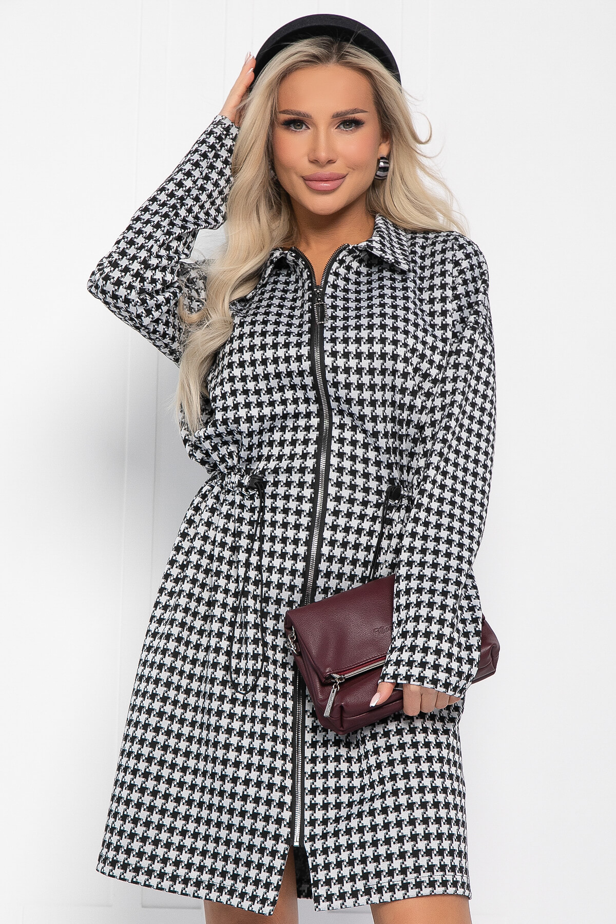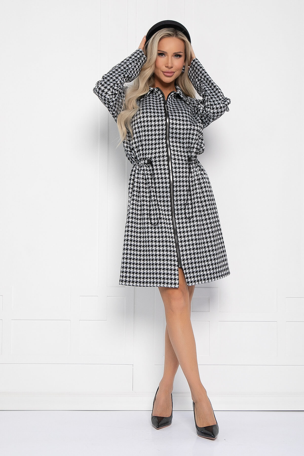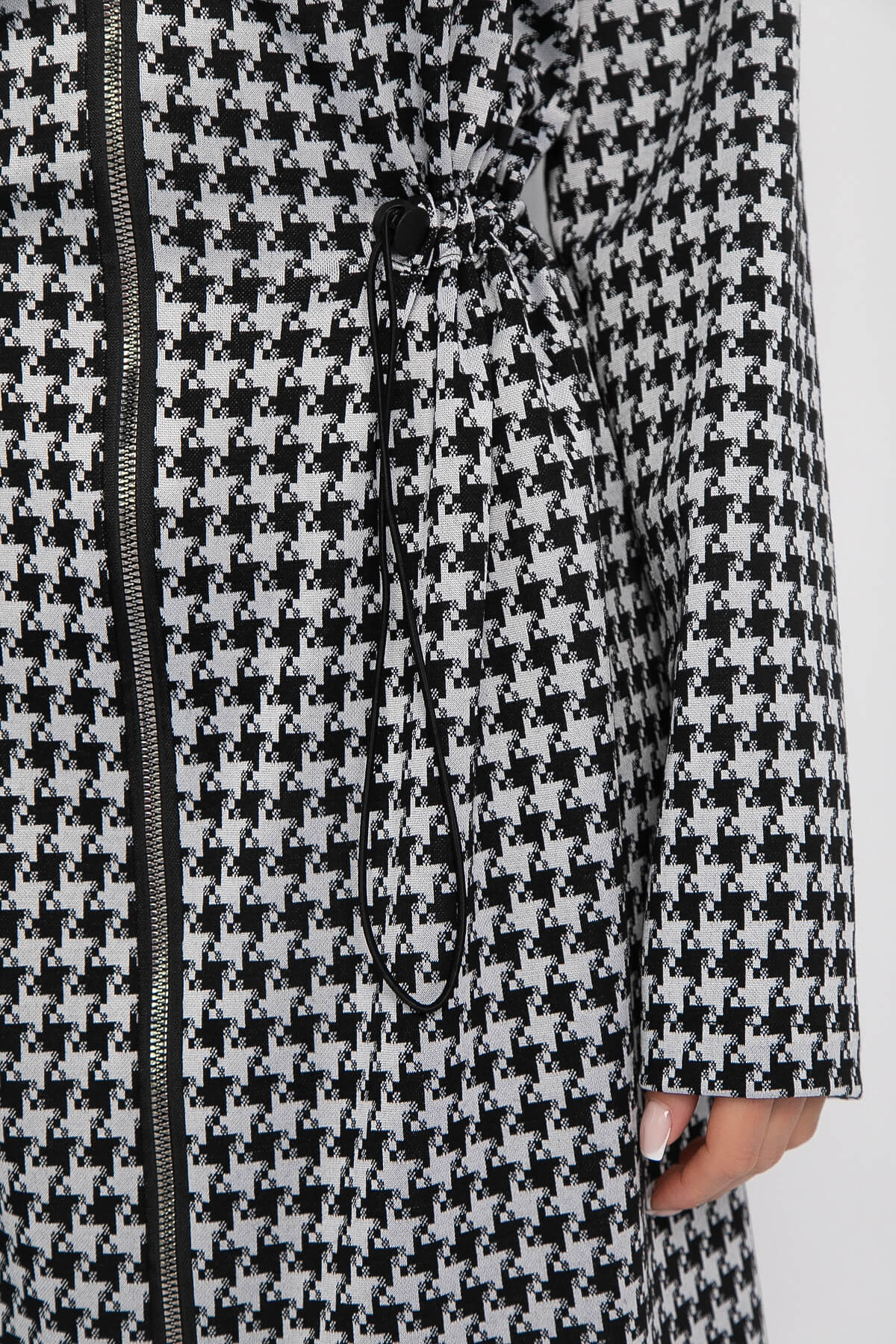 Платье с оригинальным дизайном станет отличным дополнением к вашему гардеробу. Оно прекрасно подходит для создания современного образа. Платье обладает элегантным воротником и застёжкой на молнию, что придаёт ему утончённый вид. Спущенные плечи добавляют нотку расслабленности. По талии расположена кулиска с вставленной резинкой и регулятором, что позволяет подстроить силуэт под ваши предпочтения.