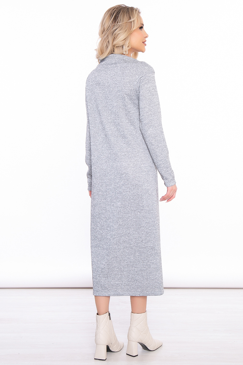 Восхитительное платье длины миди в светло-сером оттенке с люрексом. Благодаря своему дизайну, однозначно, станет одним из Ваших любимчиков в создании повседневных образов.