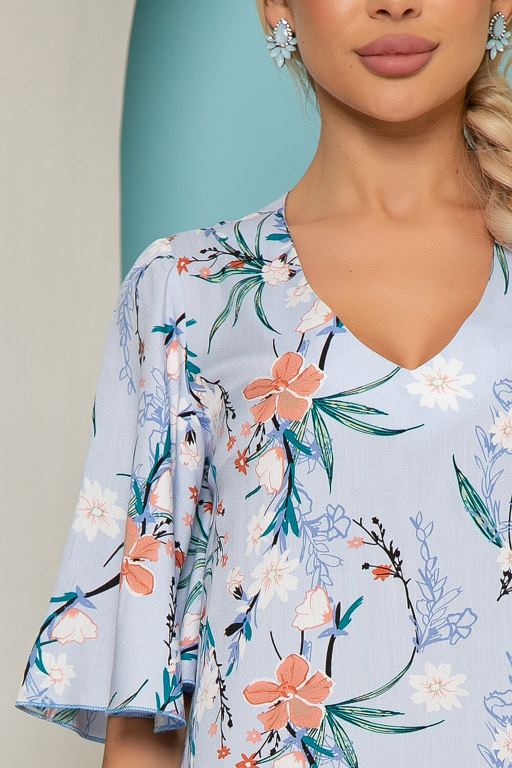 - Цвет: нежно-голубой, принт: флористический;