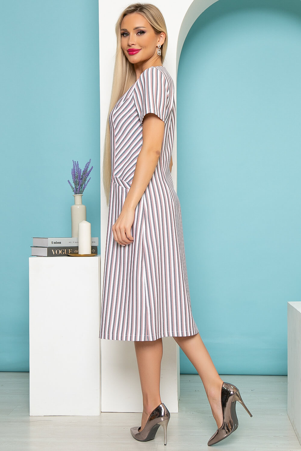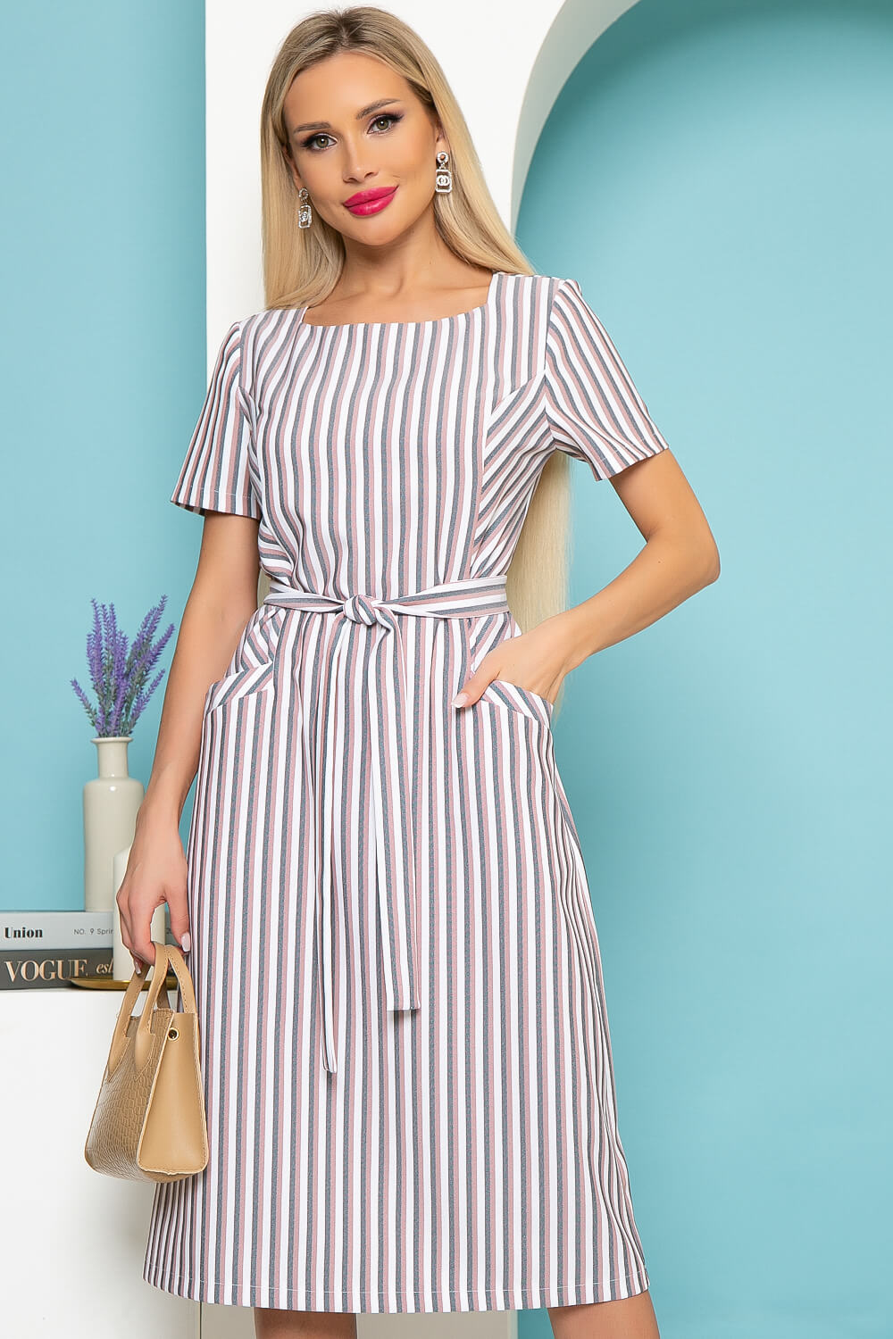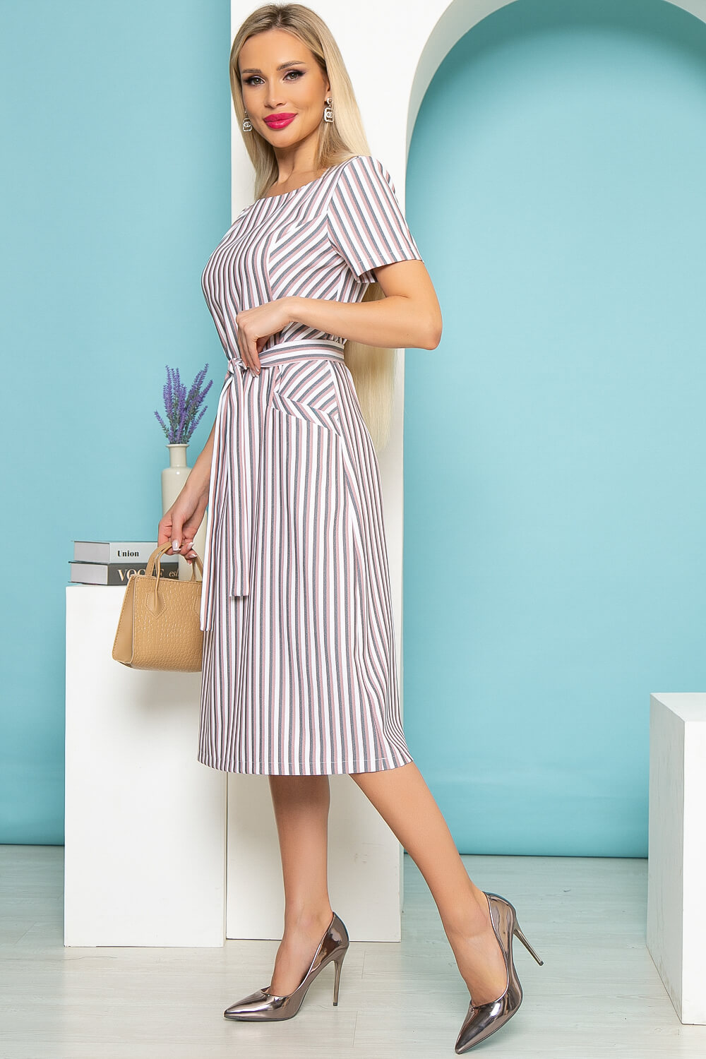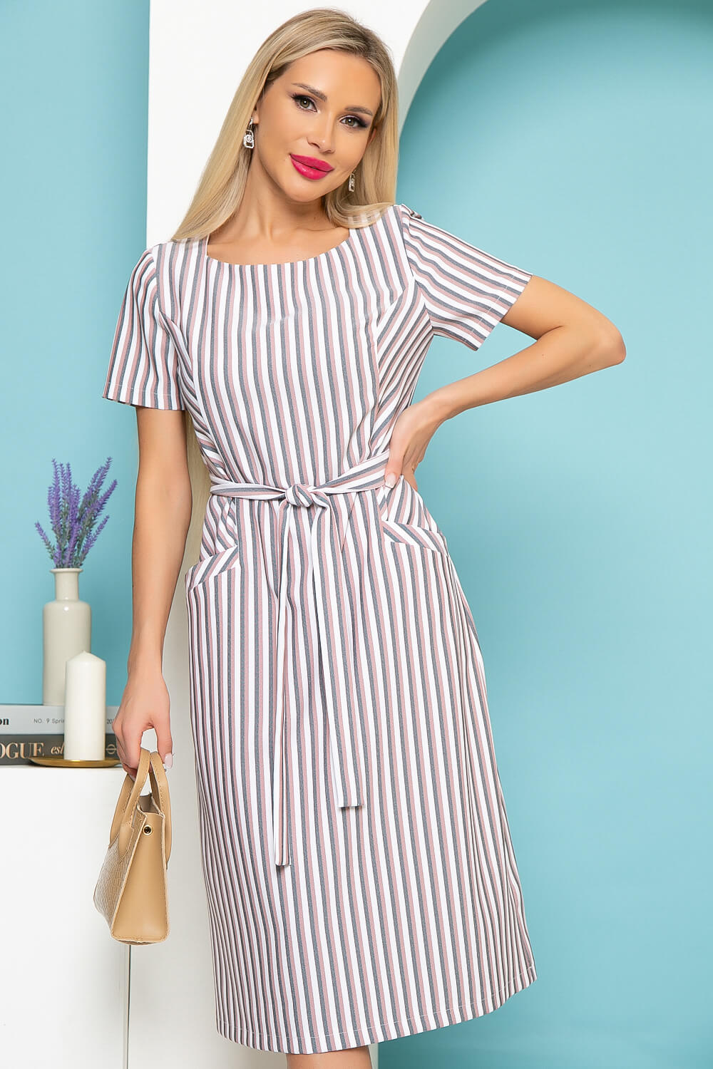 Платье "Европейский шик" (пудровая полоска) П3985
