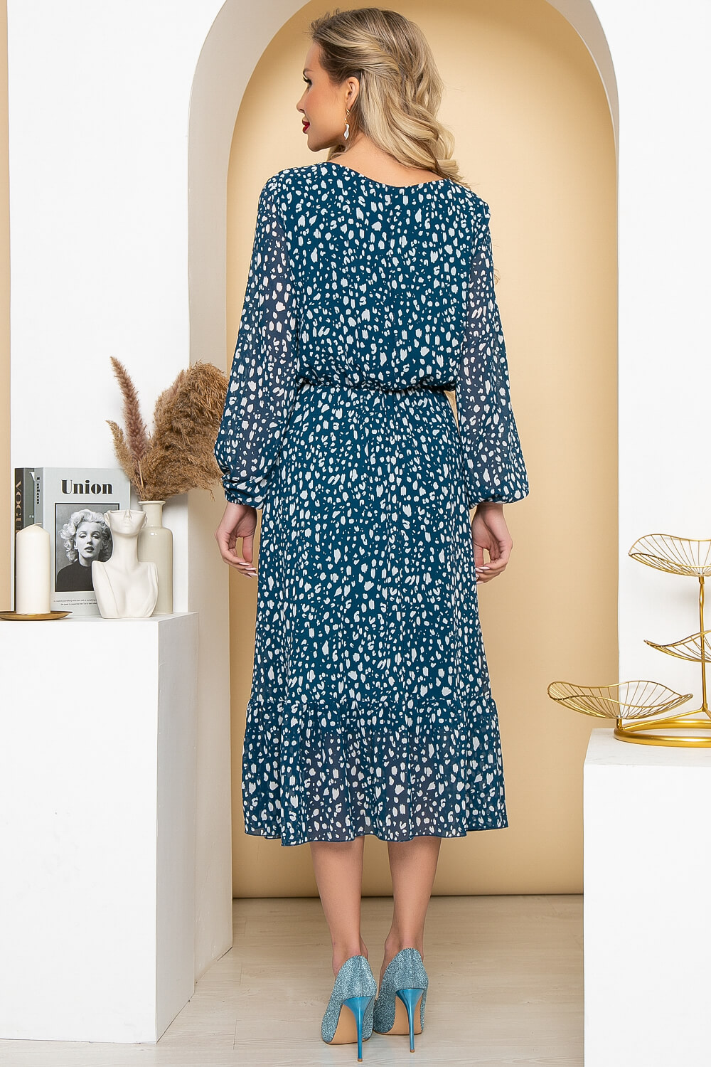 Летящее платье из шифона украсит Ваш образ на прогулке или неформальной встрече. Шифоновые платья хороши тем, что актуальны круглый год, а также выглядят они женственно и элегантно. Платье свободного кроя, рукав втачной, длинный на резинке. Платье на подкладке. Пояс из основной ткани входит в комплект.