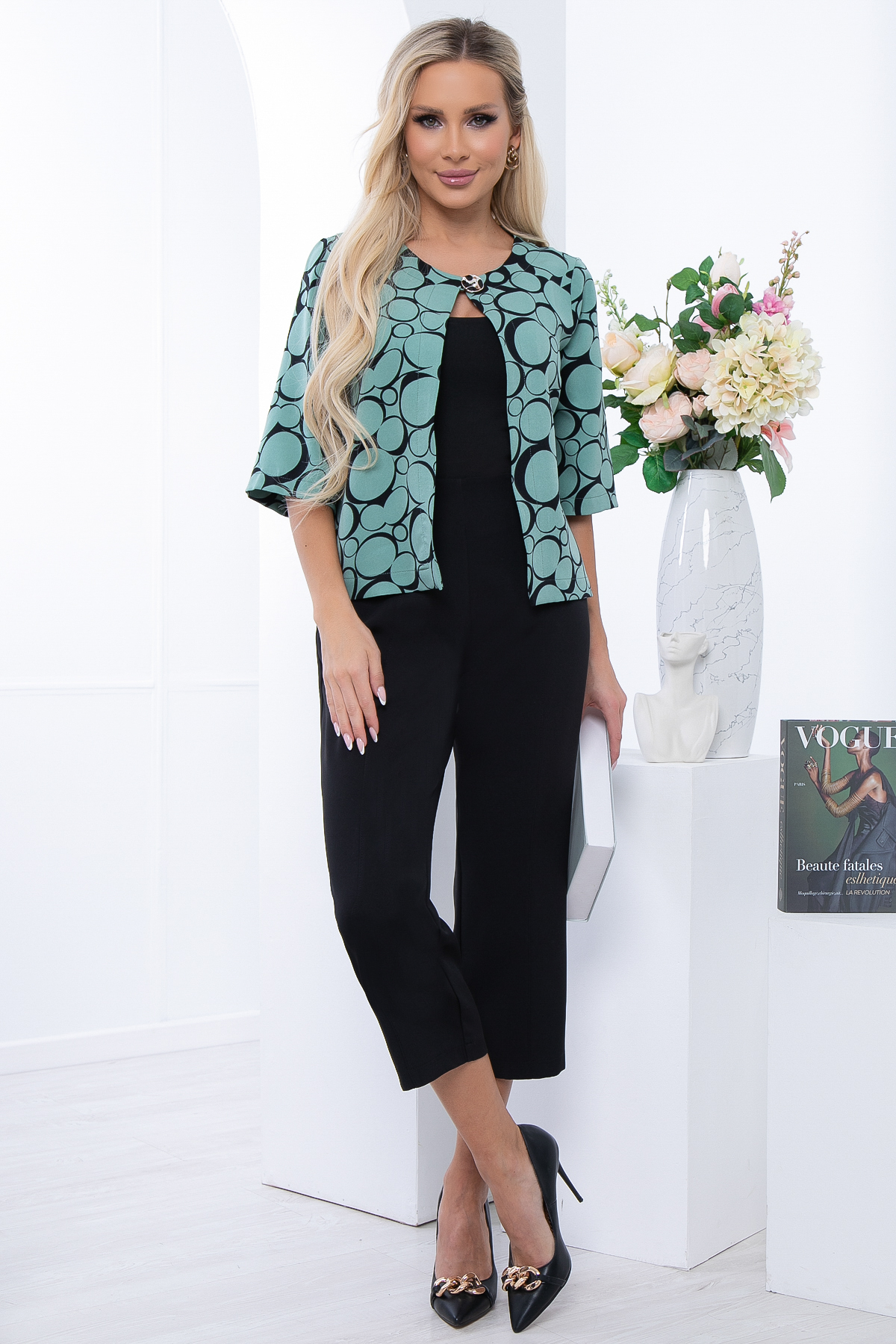 Классический жакет прямого кроя украсит Ваш деловой или праздничный образ. Жакет застёгивается по горловине на пуговицу. Рукав три четверти. Жакет без подкладки.