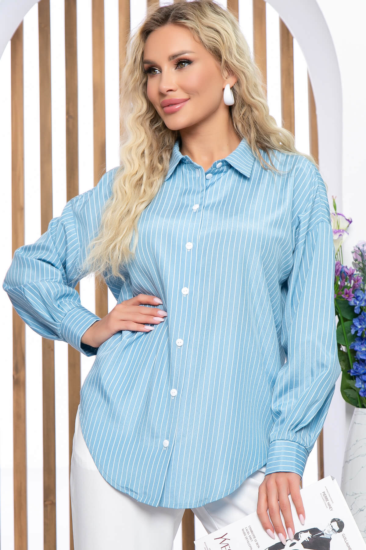 Рубашка из хлопка в стильном голубом оттенке. Свободный крой рубашки обеспечивает максимально свободную посадку на фигуре. С такой моделью можно создать и официально-деловой образ и расслабленный. Рубашка имеет длинный втачной рукав на манжете. По переду застегивается на пуговицы.