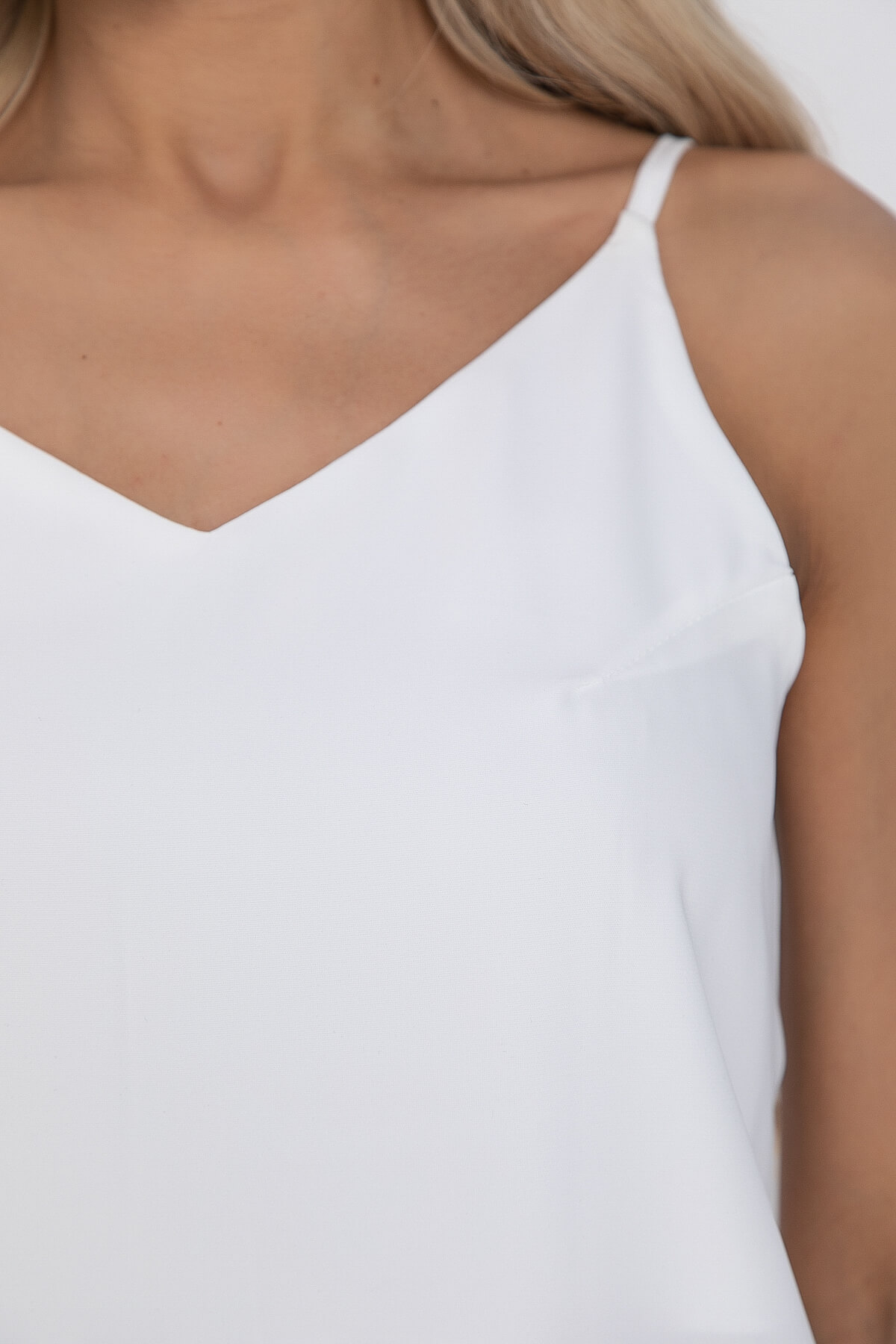 Летний легкий топ. Топ А-образного силуэта на брительках. Вырез горловины переда и спинки V-образный. С подкладкой. Его удобно использовать в качестве нижнего слоя под жакет или кардиган и создать элегантный деловой образ.