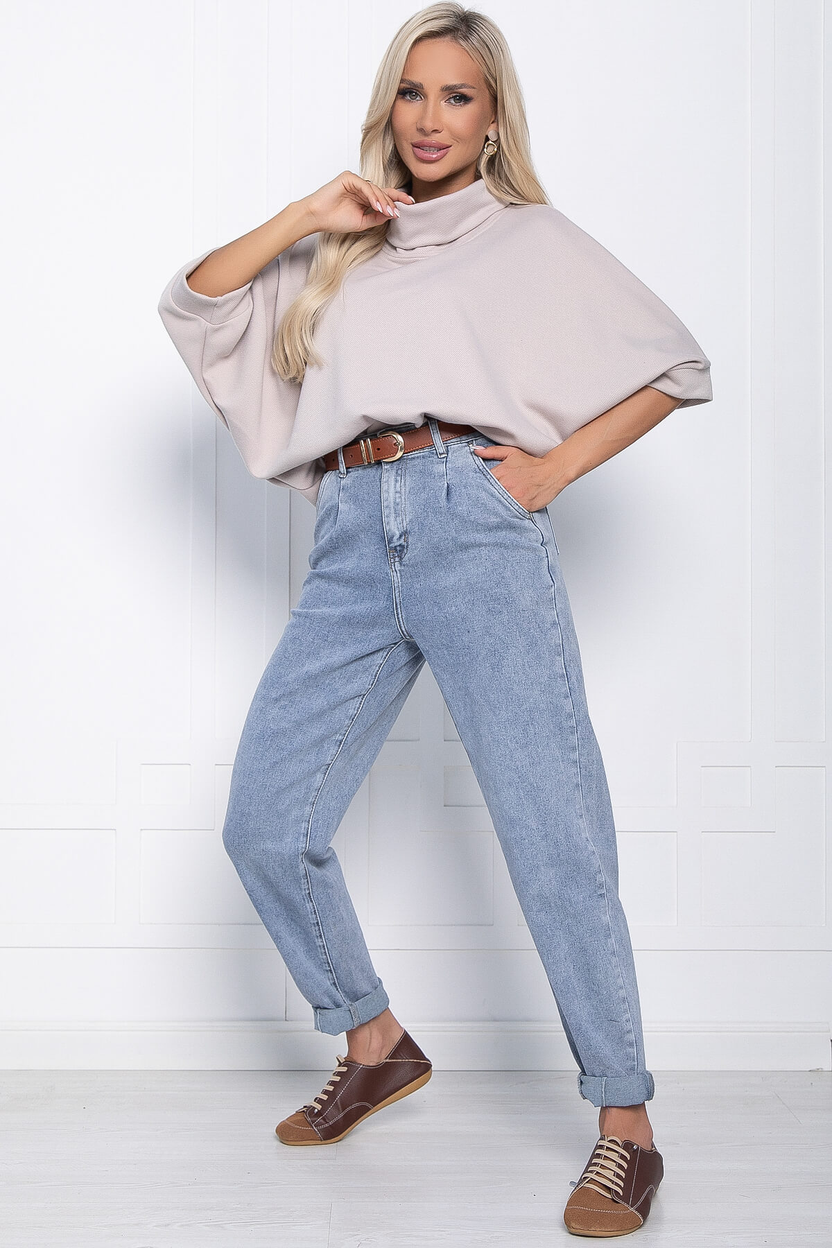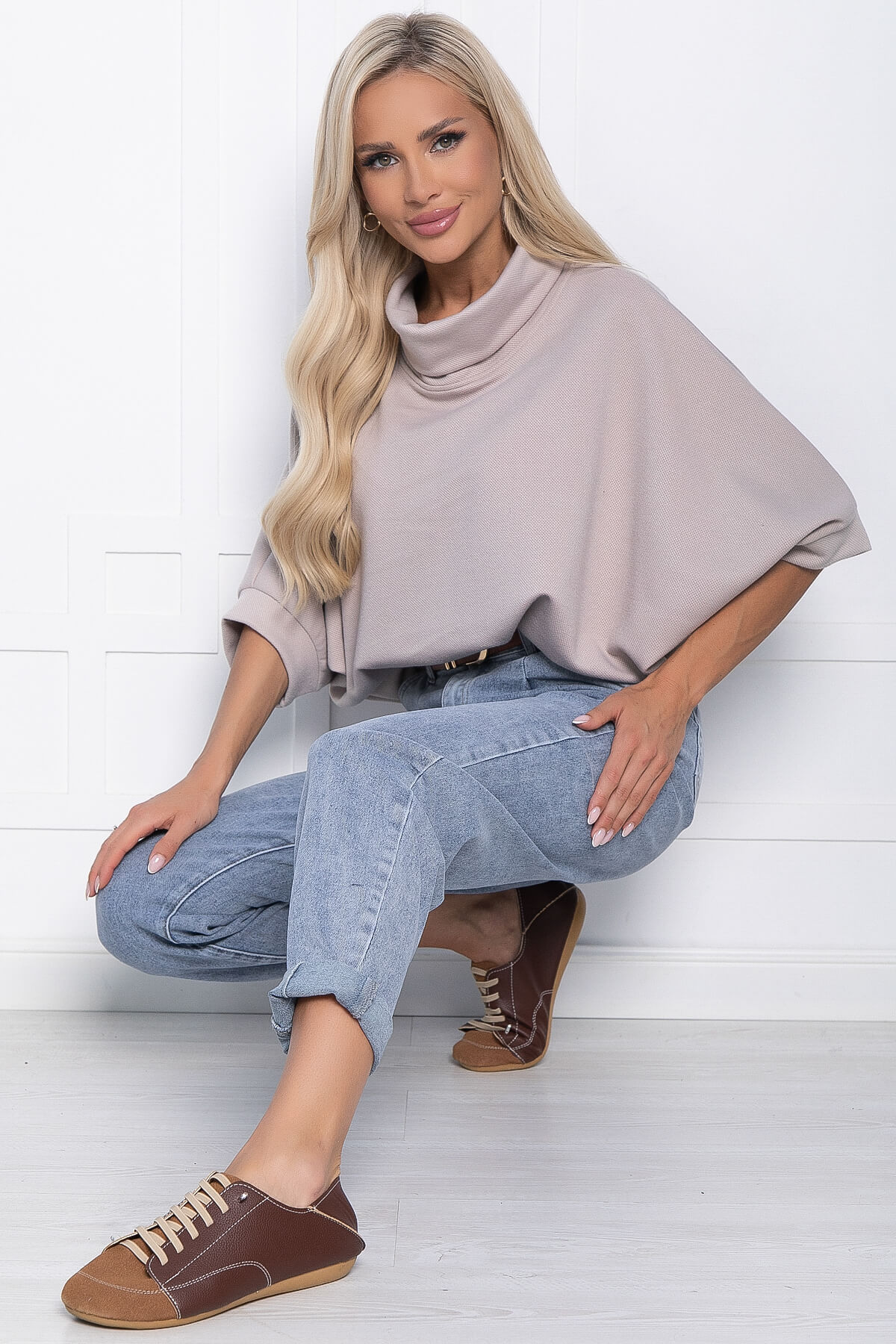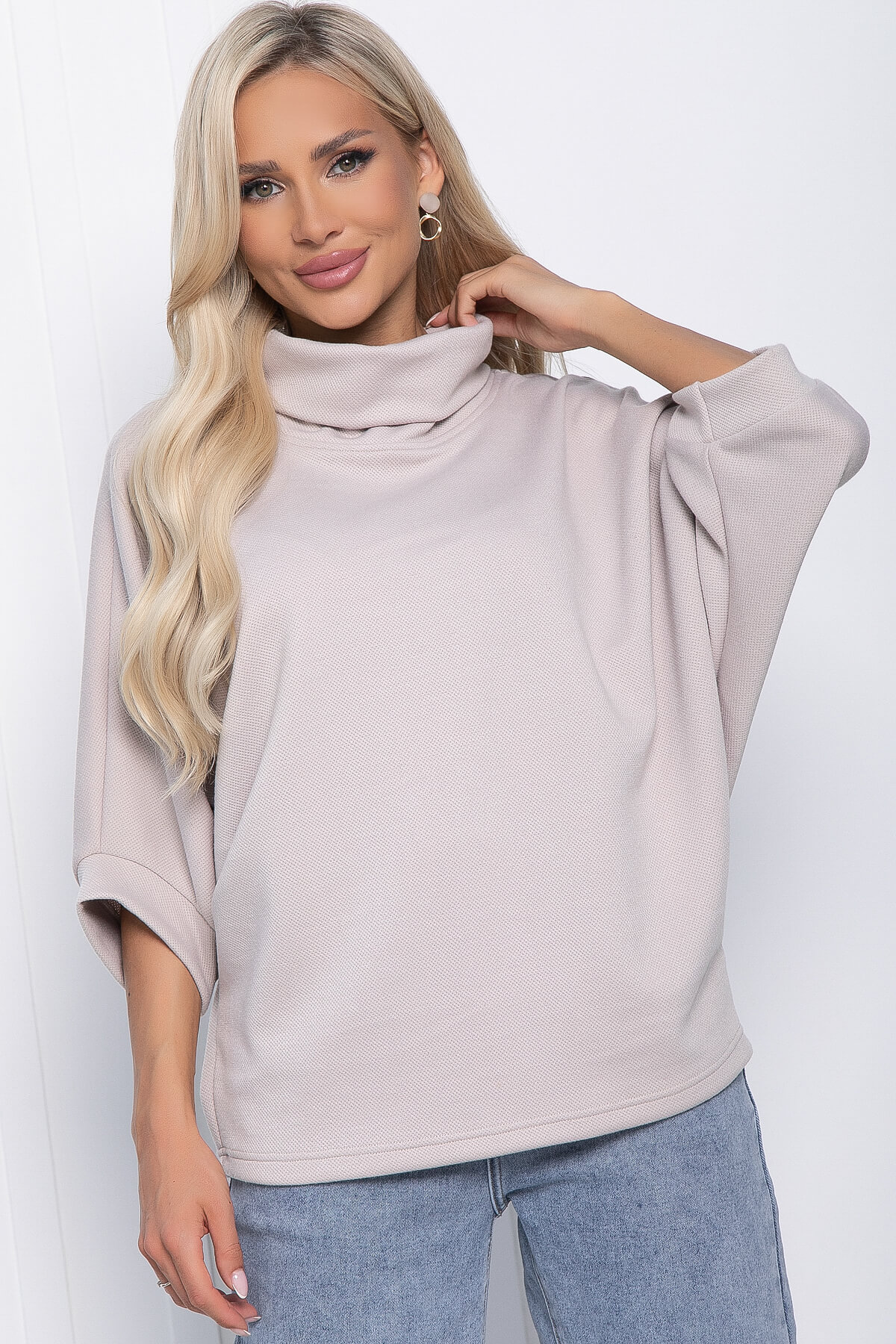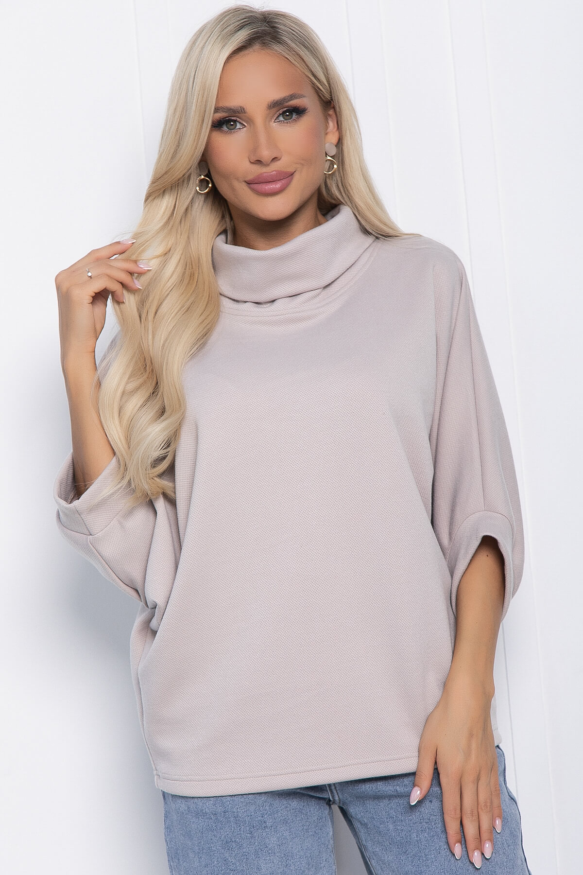 Самые непредсказуемые ансамбли и живописные образы позволяет создать джемпер, вписывающийся в самые разнообразные стили. Удобное, практичное, функциональное изделие позволит сочетать его с разнообразным низом, а мягкий трикотаж подарит комфорт в прохладную погоду. Джемпер имеет акцентную горловину, а рукава скроены по типу «Летучая мышь». Свободный крой позволит скрыть недостатки фигуры.