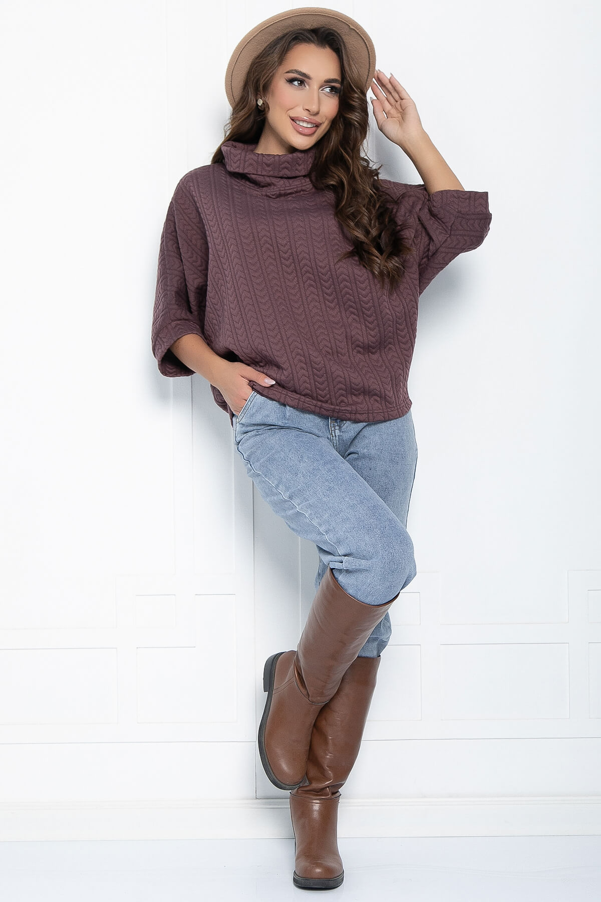 Самые непредсказуемые ансамбли и живописные образы позволяет создать джемпер, вписывающийся в самые разнообразные стили. Удобное, практичное, функциональное изделие позволит сочетать его с разнообразным низом, а мягкий трикотаж подарит комфорт в прохладную погоду. Джемпер имеет акцентную горловину, а рукава скроены по типу «Летучая мышь». Свободный крой позволит скрыть недостатки фигуры.