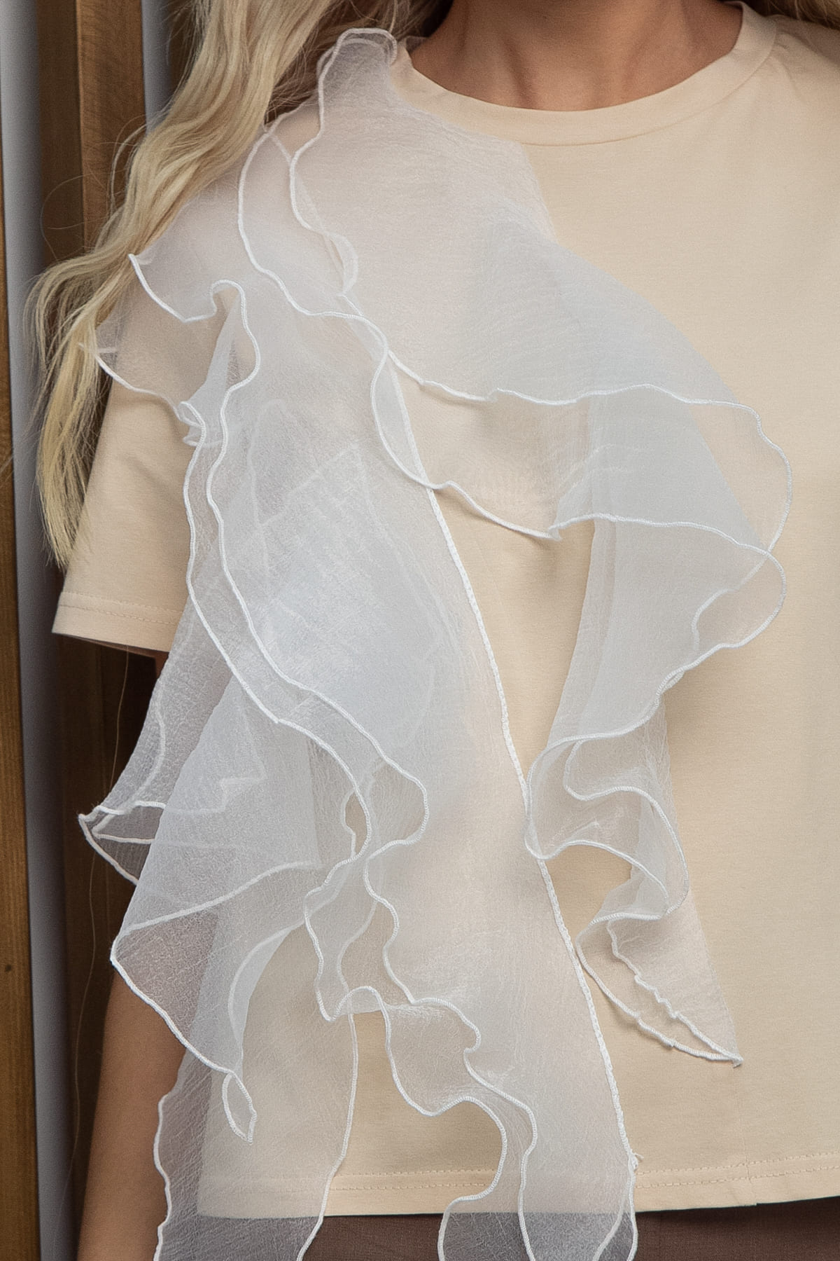 Блузка с воланами из органзы — это настоящая находка для вашего гардероба! Она станет ярким акцентом как на торжественных мероприятиях, так и для повседневных прогулок. Воланы придают образу лёгкость и романтичность. С этой блузкой вы сможете создать стильный и запоминающийся образ!