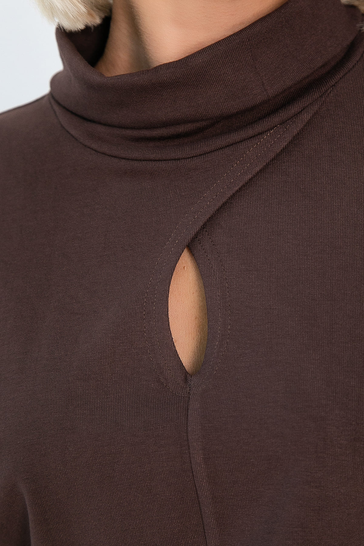 Разнообразьте свой гардероб стильным джемпером, который станет универсальным элементом вашего образа. Изготовленная из мягкого вязаного трикотажа, она обеспечит вам комфорт на протяжении всего дня. Джемпер имеет спущенные рукава и горловину в форме хомута. Каплевидный вырез привлекает внимание, придавая образу изысканности. Эта модель станет основой для создания разнообразных стильных образов. Она идеально подходит для прохладных вечеров и осенних прогулок, и непременно займёт почётное место в вашем гардеробе.