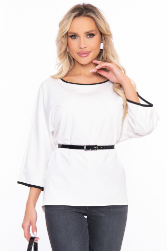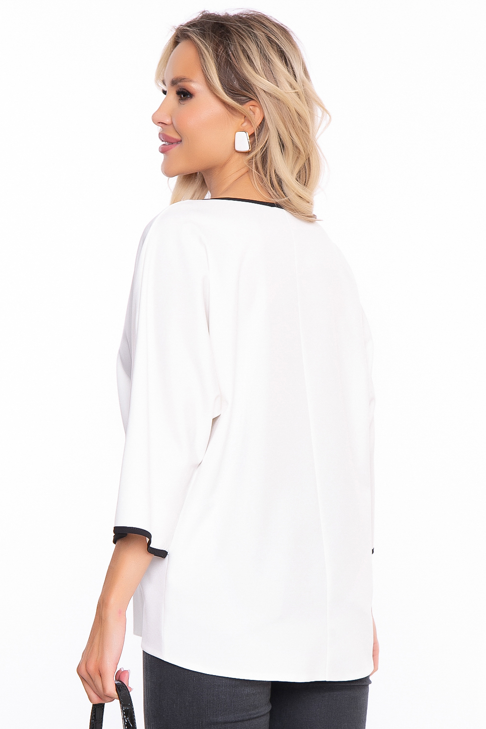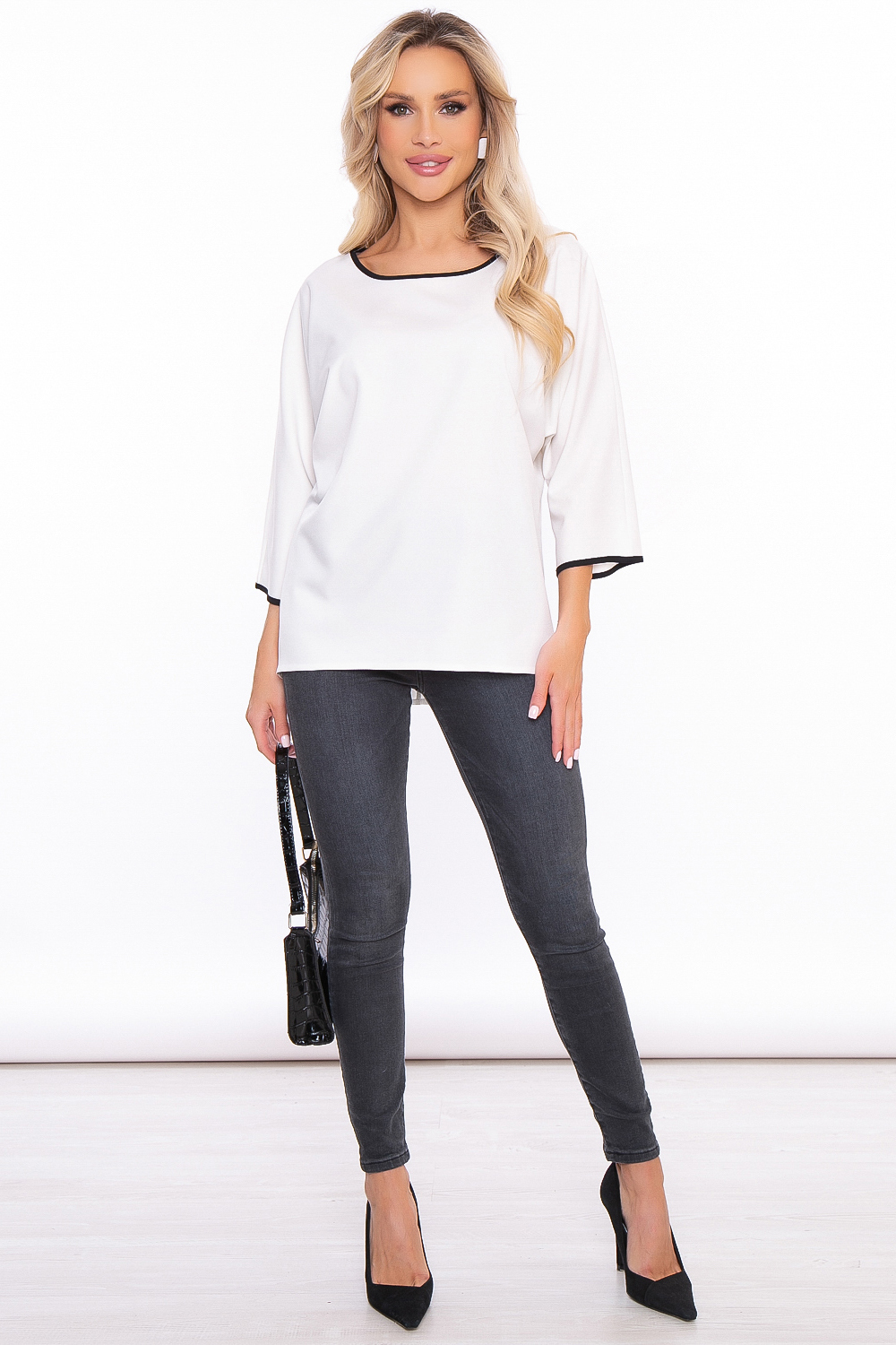 - Блуза свободного кроя, вырез горловины округлый, обработан чёрной окантовкой;