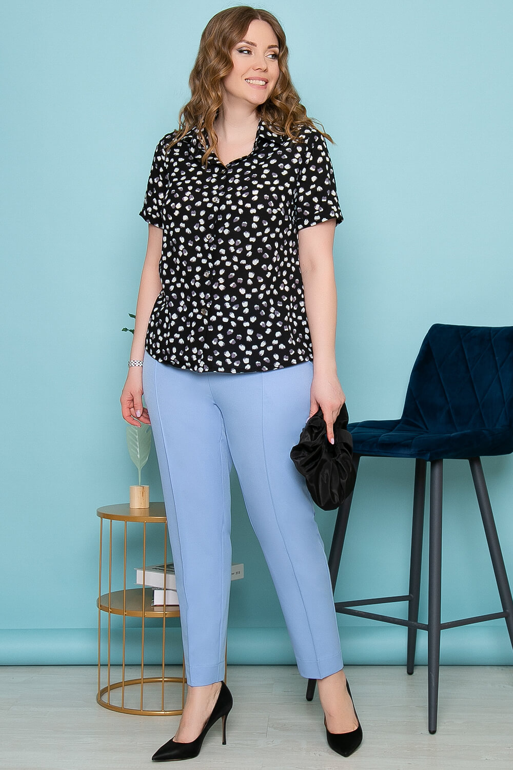 Элегантная блуза с коротким рукавом - прекрасный вариант для создания делового образа в тёплый период. Блуза прямого кроя на пуговицах. Классический отложной воротничок.