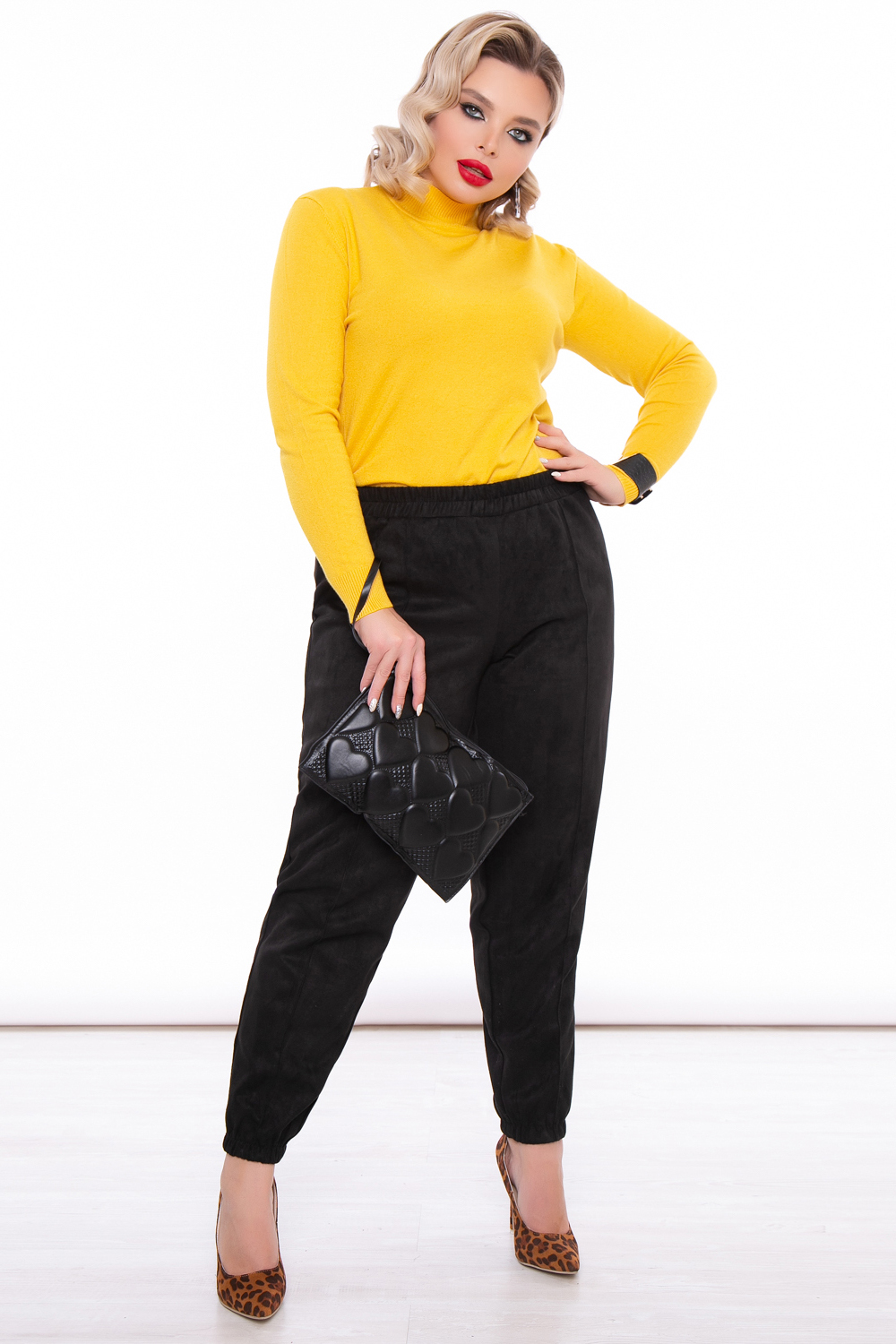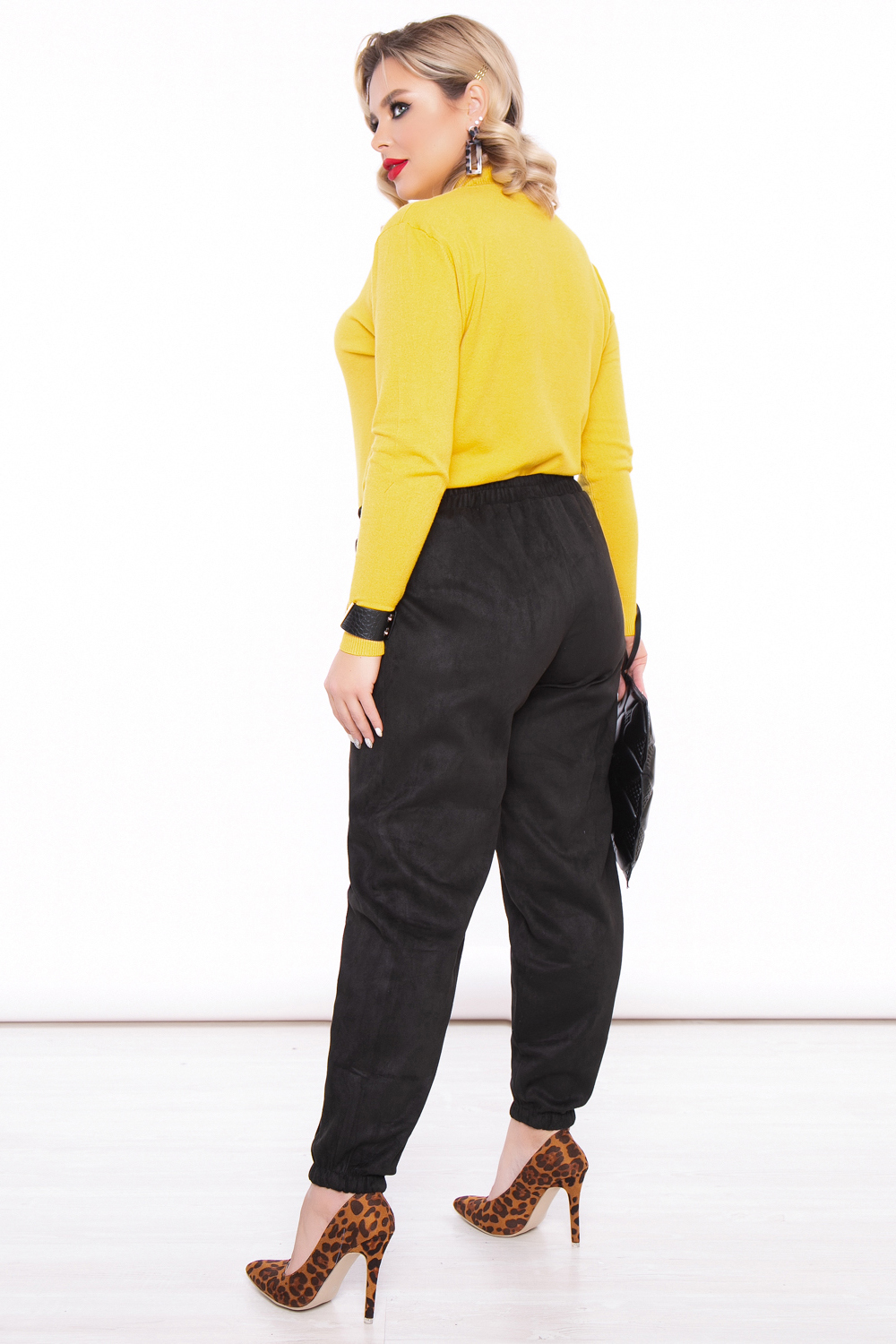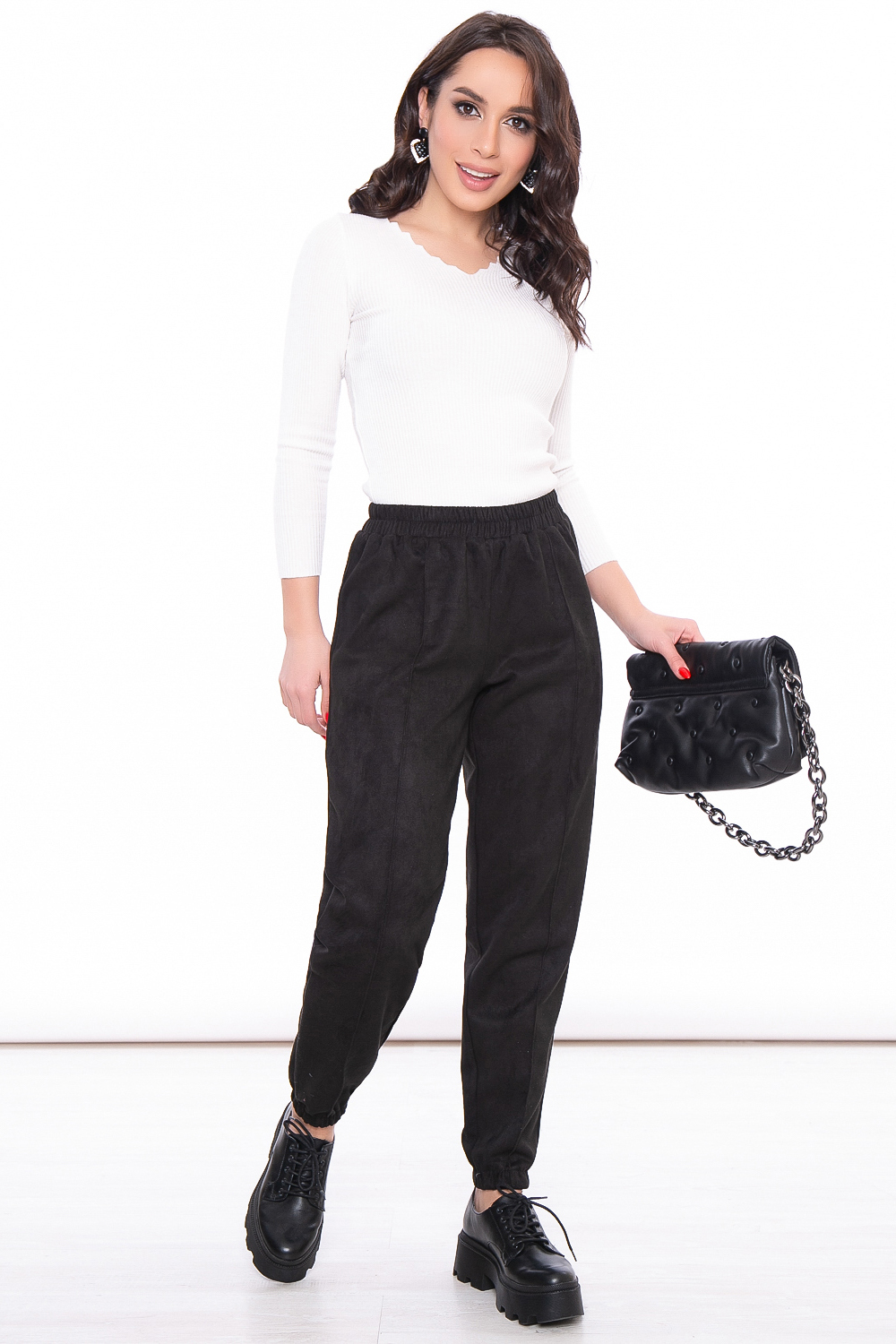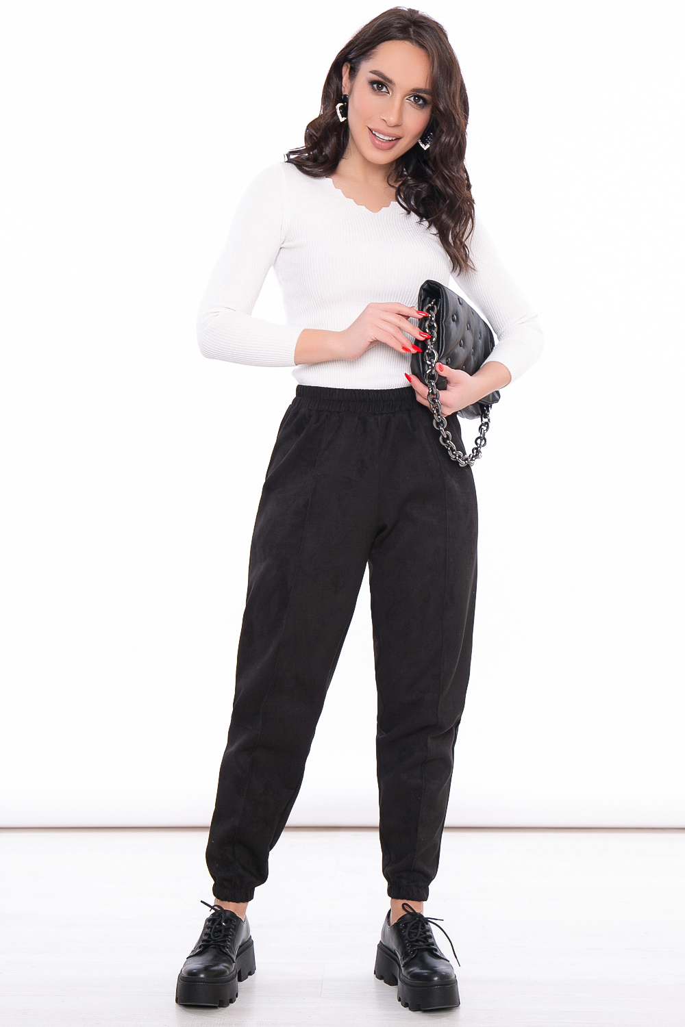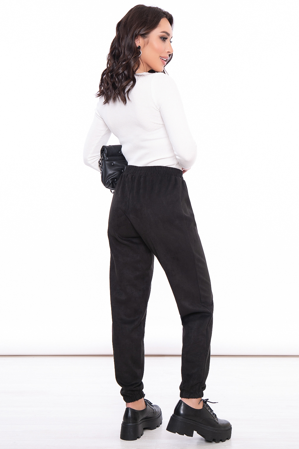 - Джоггеры свободного кроя из замши в классическом черном цвете;