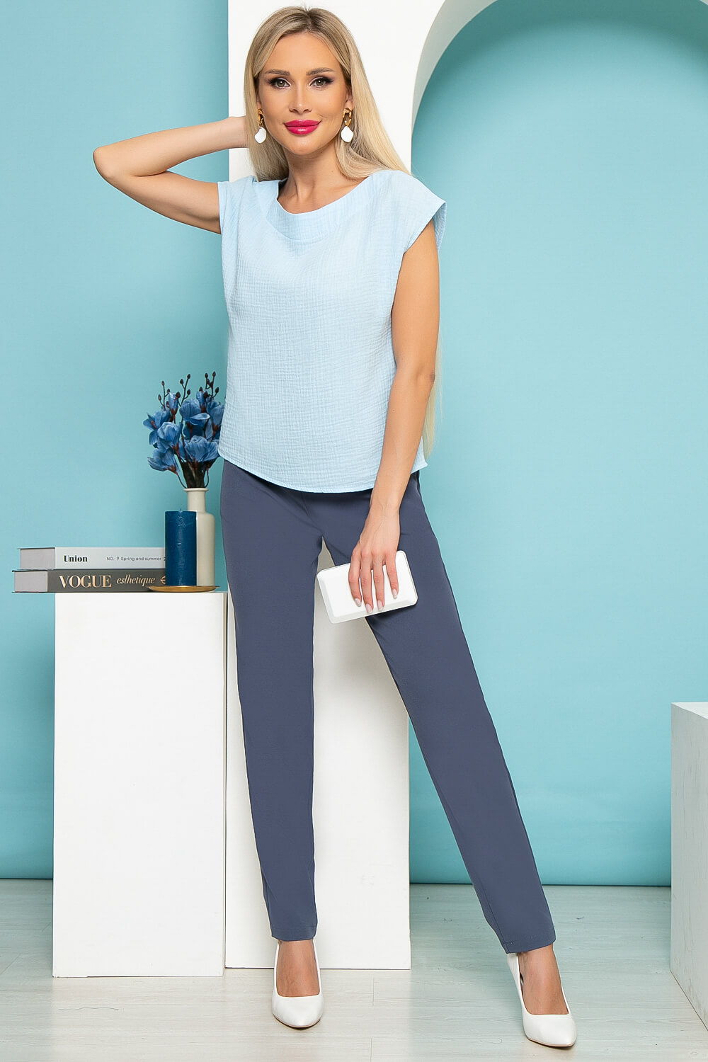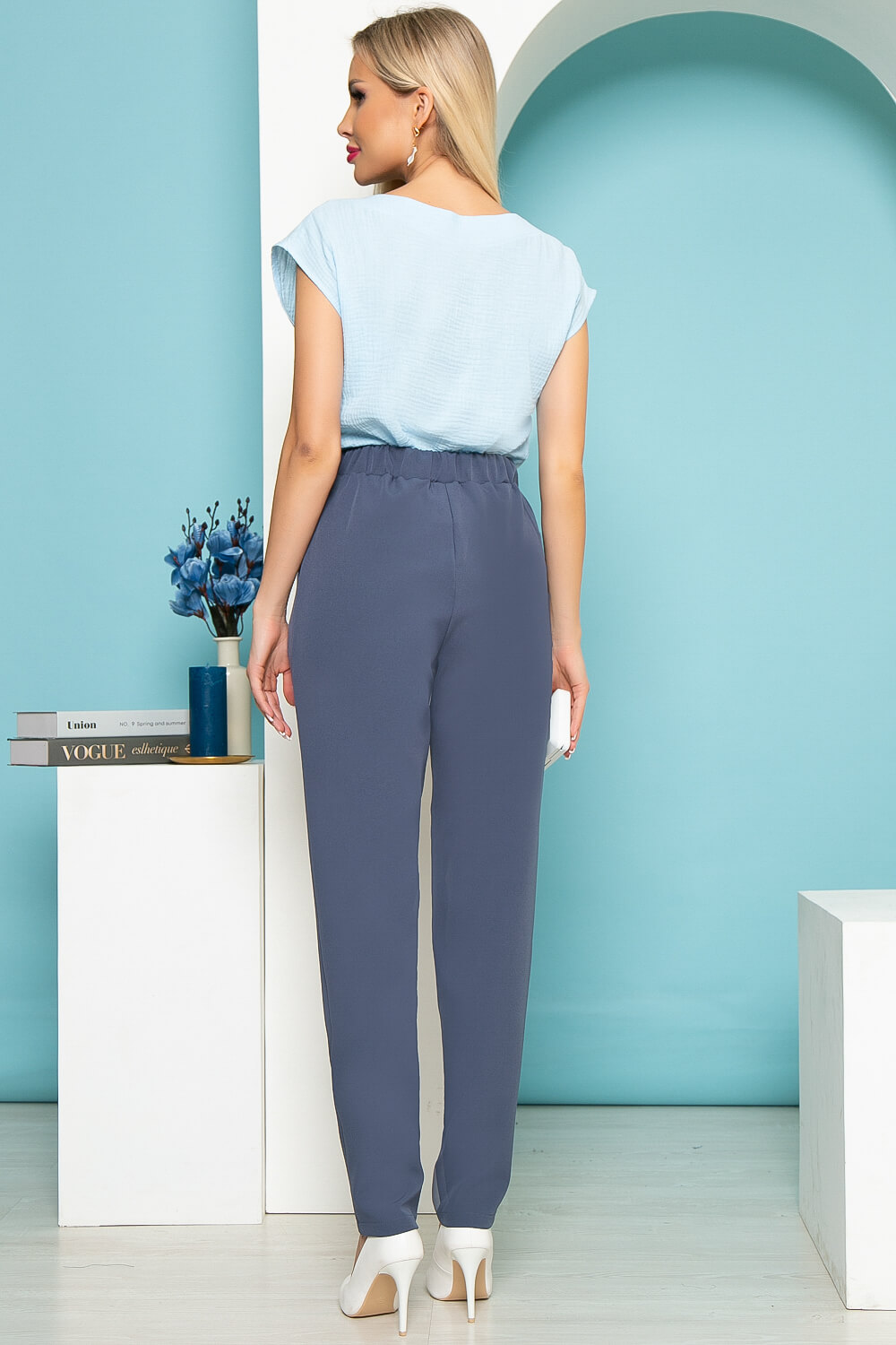 Классические брюки в невероятно красивом серо-голубом оттенке помогут Вам в создании изящных образов. Брюки по талии оснащены резинкой, что позволяет добиться комфортной посадки по фигуре. В боковых швах есть карманы. Брюки подойдут для офисного и повседневного образа. Они не сковывают движений и выглядят стильно и лаконично, Вам останется только подобрать верх!