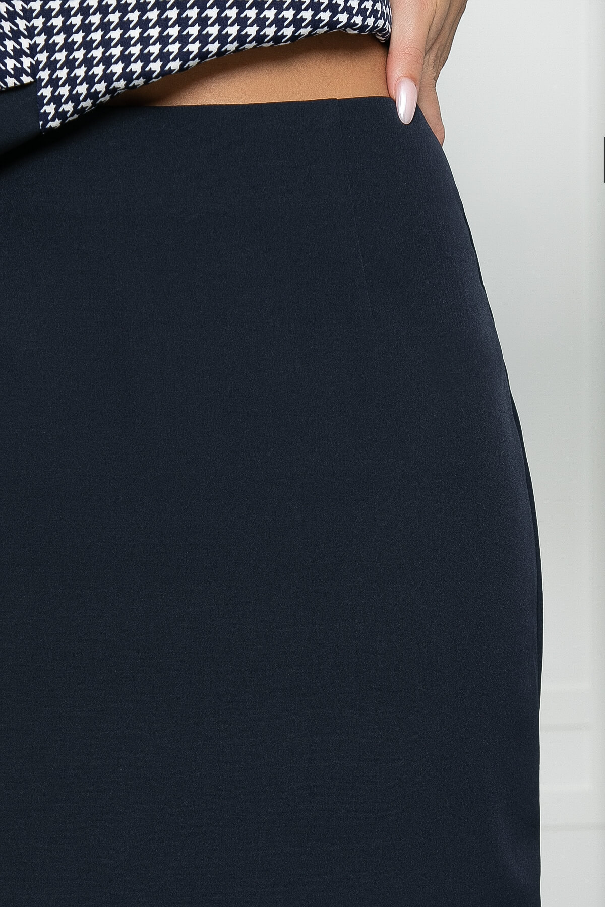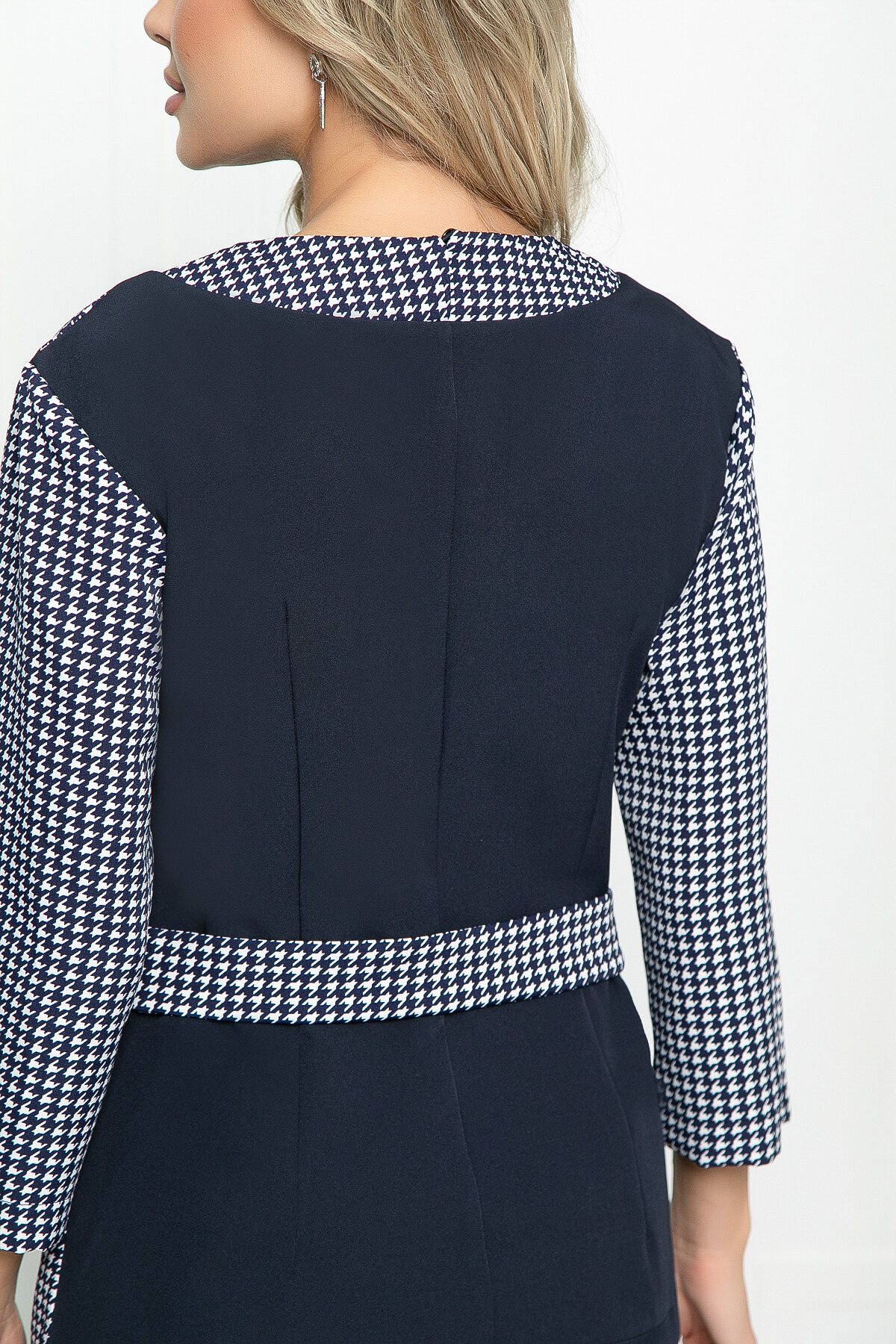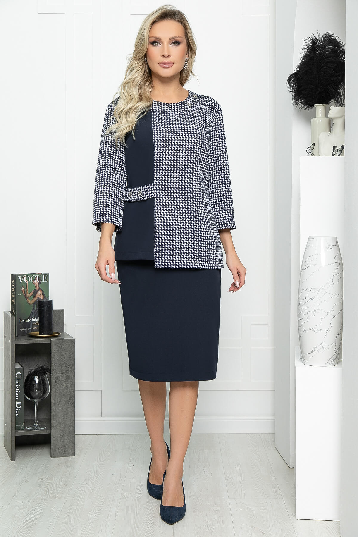 Строгий костюм - это классический вариант для деловой встречи. Он так же будет отлично смотреться и в повседневной жизни. Костюм можно сочетать с другими элементами базового гардероба. Блуза будет отлично смотреться с джинсами и брюками. А юбку можно надевать с топами, футболками и другими блузами, создавая повседневный или праздничный образ. У блузы вырез округлый, украшен пуговицами. Рукав втачной, три четверти.