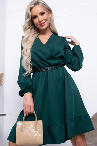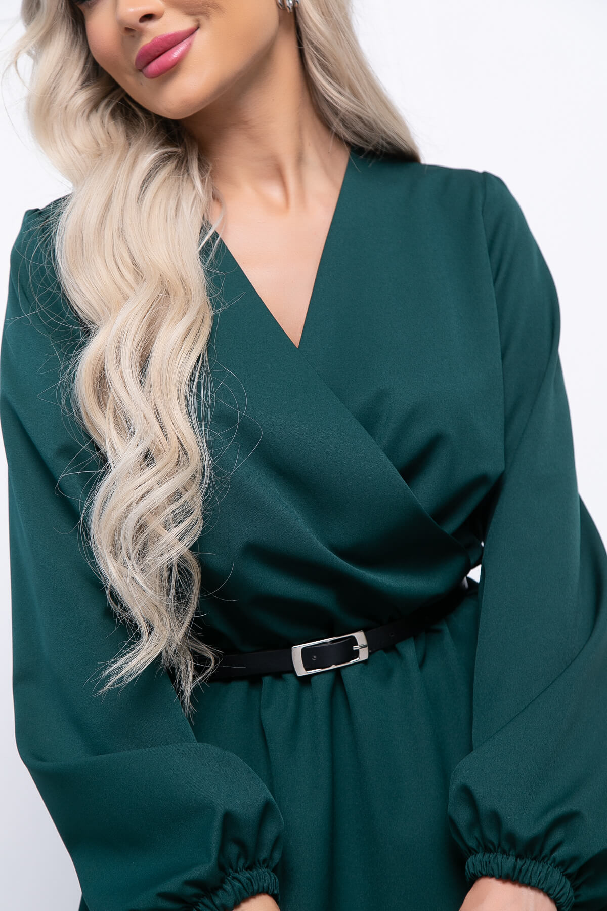 Женственное и невероятно милое платье, которое поможет в создании неповторимого образа. Красивый V-образный вырез с имитацией запаха. Пышный длинный рукав, по низу на резинке. В комплект входит пояс.