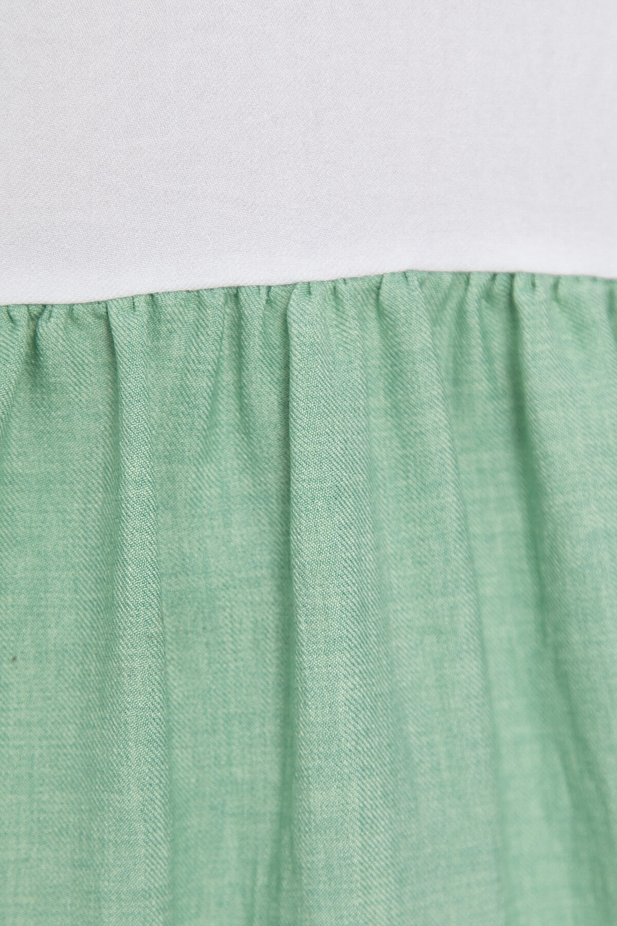 Свободное летнее платье которое будет превосходным вариантом для непринуждённого наряда на каждый день. Отличный выбор для прогулки с друзьями. Дополнить образ можно туфлями, босоножками или кроссовками.