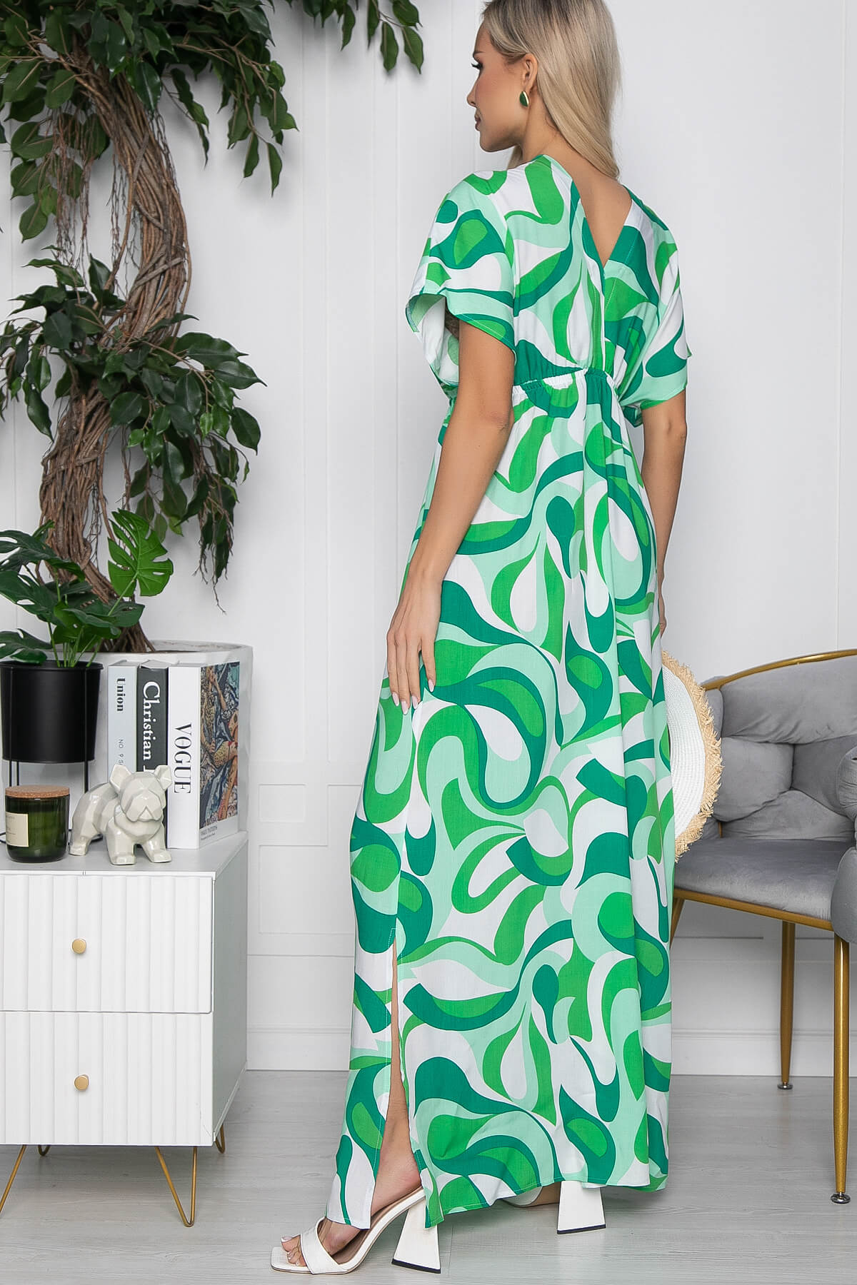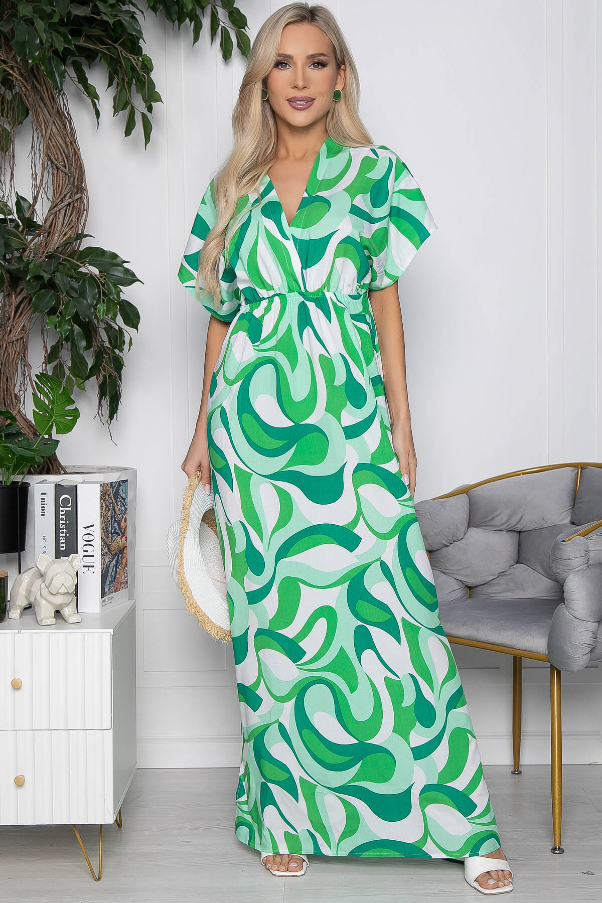 Летнее платье макси в греческом стиле. Перед очарованием этого платья не сможет устоять даже самый равнодушный ценитель красоты. Свободный крой платья не будет сковывать движений и позволит чувствовать себя максимально комфортно. Достоинства фигуры подчеркивает V-образный вырез с имитацией запаха по переду и по спинке. Талия на мягкой резинке.