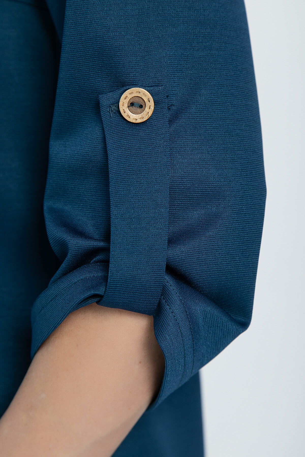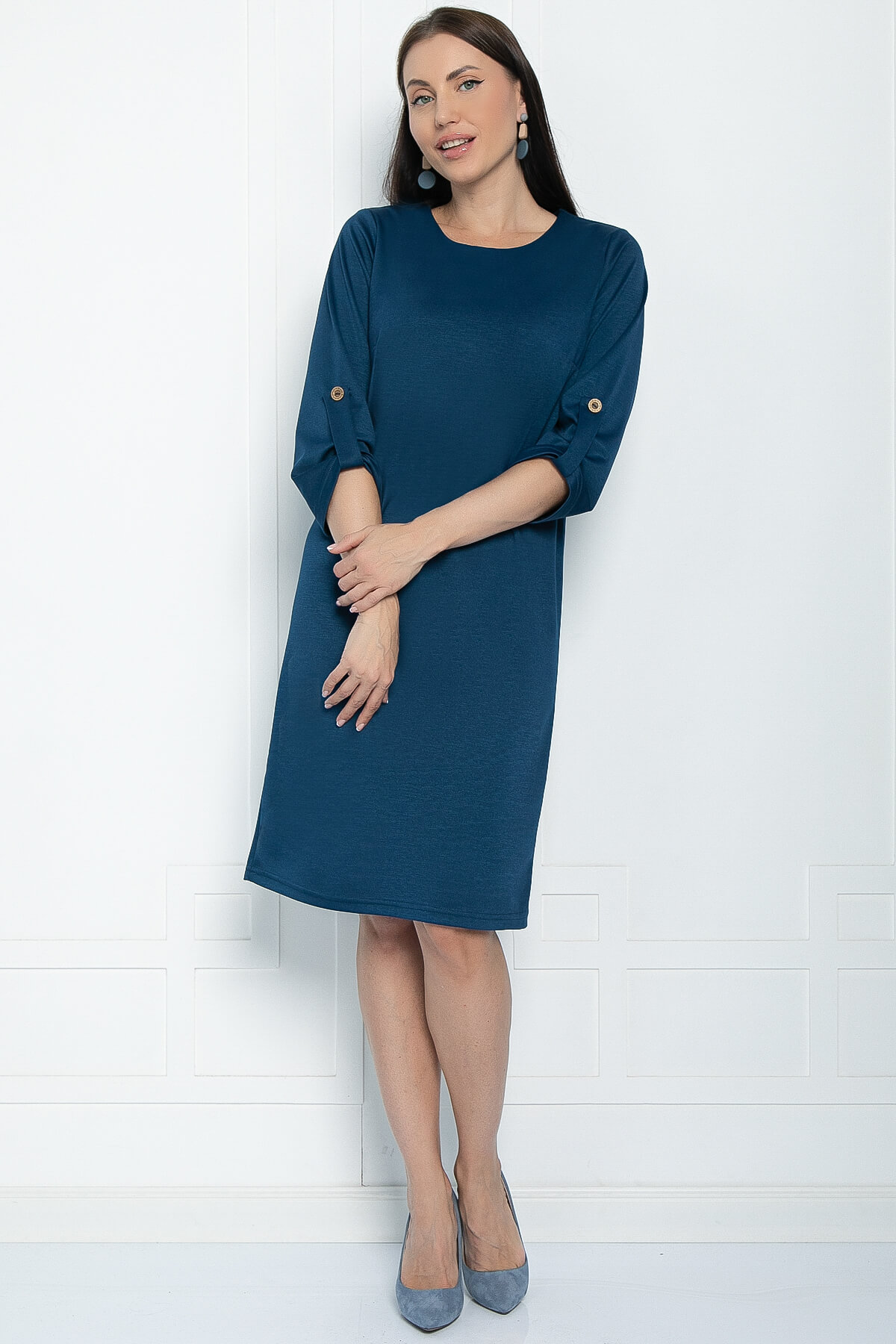 Базовое платье — это модель, которая сочетает в себе стиль и комфорт. Его рукав украшен декоративной патой, что придаёт ему особый шарм. Такое платье можно носить с любой обувью, оно универсально. А пояс из основной ткани изящно подчеркнёт вашу талию, сделав образ ещё более женственным.