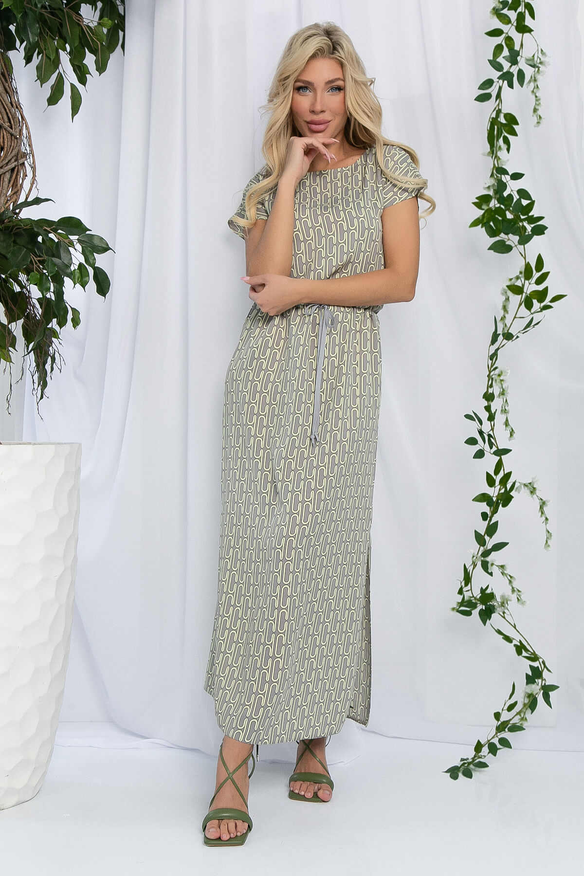 Универсальное платье отлично разнообразит ваш гардероб. Его можно носить как в стиле кэжуал, так и сочетать со спорт шик. Платье прямого кроя с укороченным, цельнокроеным рукавом. Образ дополняет наличие разрезов на боковых швах изделия. Платье без подкладки. В линию талии вставлен шнурок.