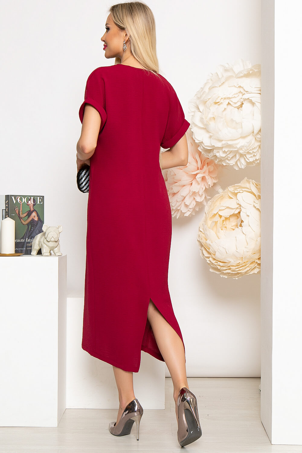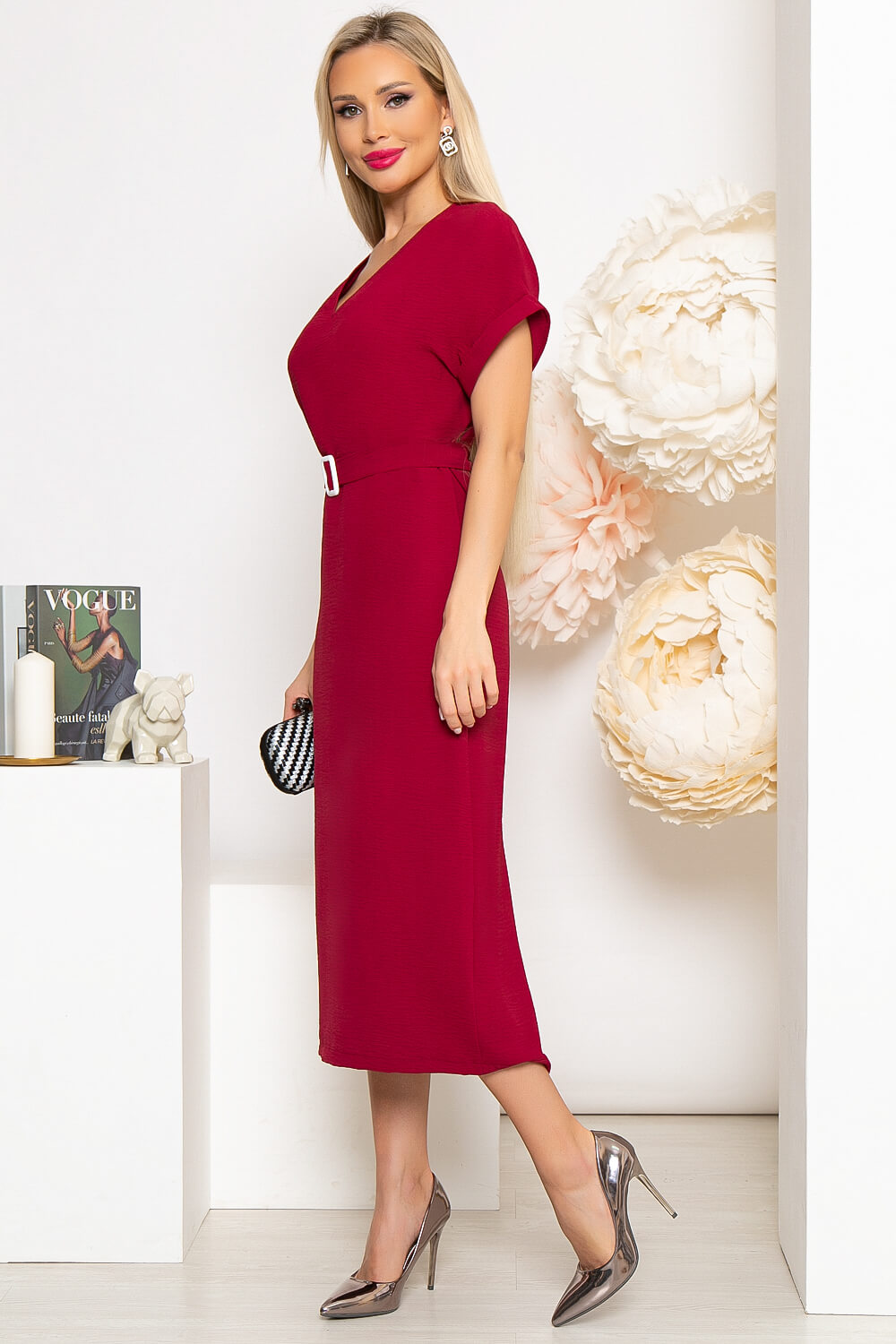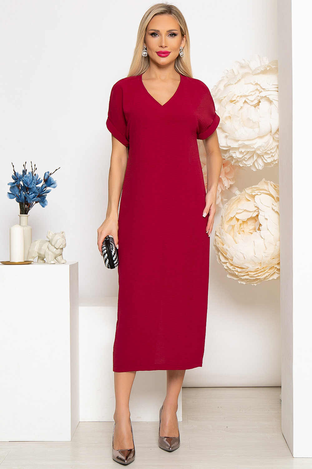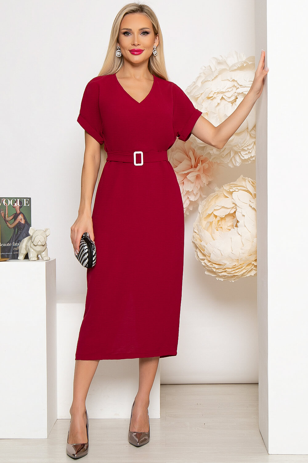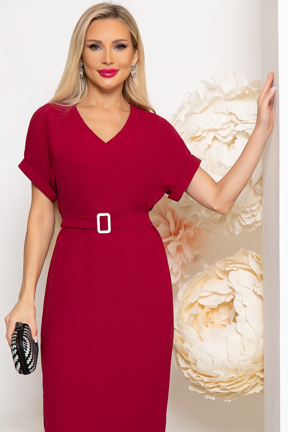 Невероятно женственное платье прямого кроя длины миди в дорогом бордовом оттенке. Платье создано без лишних деталей и в этом его прелесть! Это просто образец лаконичности. Прекрасно подойдёт для стильных повседневных образов, а также может стать главным элементом праздничного или вечернего, достаточно лишь дополнить образ подходящими аксессуарами и обувью. Платье прямого кроя, разрезное по спинке. Сзади разрез для комфортного шага. V-образный вырез горловины, безусловно, дополняет и украшает образ. Рукав короткий, цельнокроенный с отворотом. В комплект входит пояс из основной ткани с пряжкой.