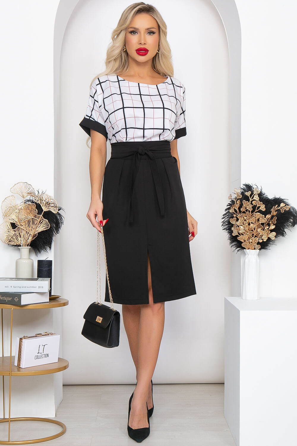 Элегантное платье в новом сочетании цветов подчеркнёт Вашу женственность, а его интересный крой расставит грамотные акценты в образе. Платье полуприлегающего силуэта, по переду защипы в области груди и талии, юбка разрезная по переду с деликатным разрезом, приоткрывающим ножки. Рукав укороченный, с манжетом. В комплекте пояс-кушак, позволяющий красиво подчеркнуть талию.