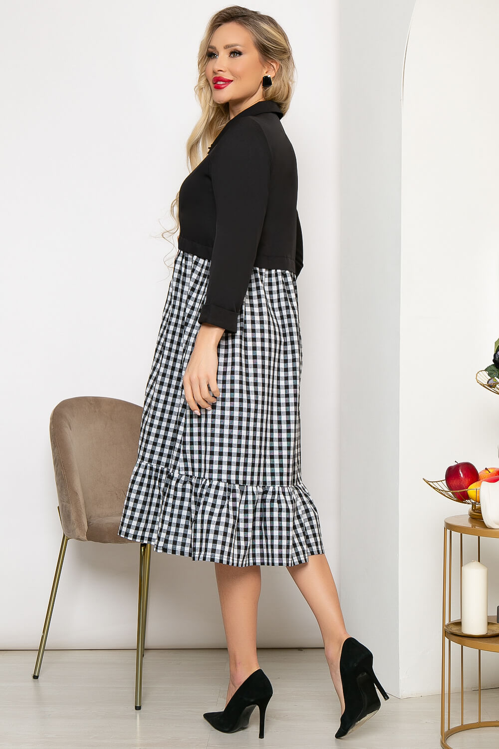 Женственное платье из комбинированной ткани создаст интересный женственный образ. Платье отрезное по линии талии, лиф выполнен из плотной костюмной ткани с пуговицами по переду. Низ лифа оформлен цельнокроеной обтачкой.